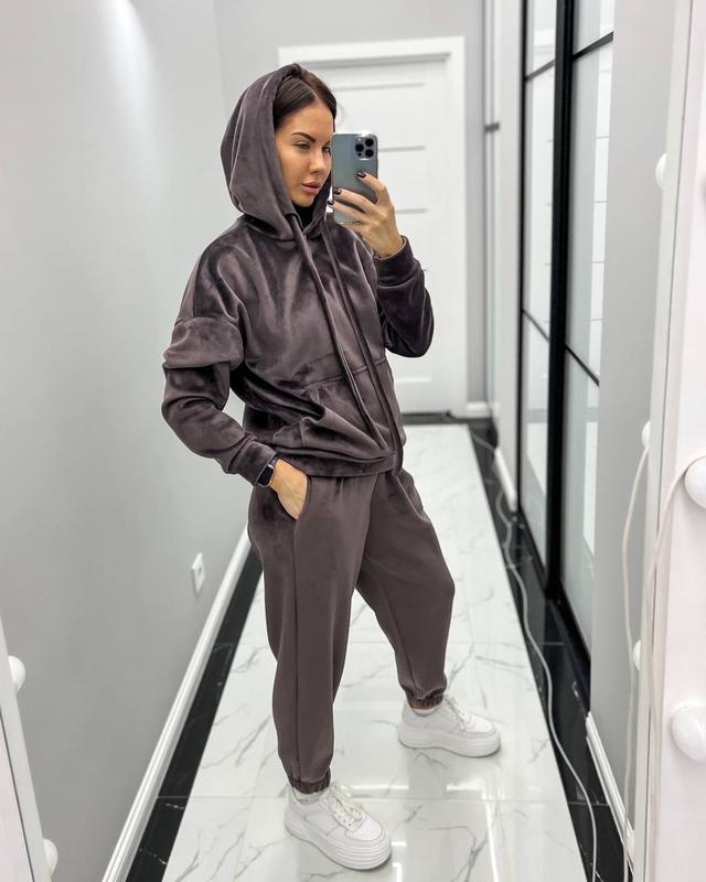Костюм з капюшоном з двостороннього велюру 🏷️Ціна: 1.130 грн 🔥 ▪️Розмір: S(42-44) M(46-48) L(50-52)▪️Тканина:Двосторонній велюр▪️Кольори: чорний,графіт,бежевий,блакитний,ліловийЗаміри на останньому фото ➡️