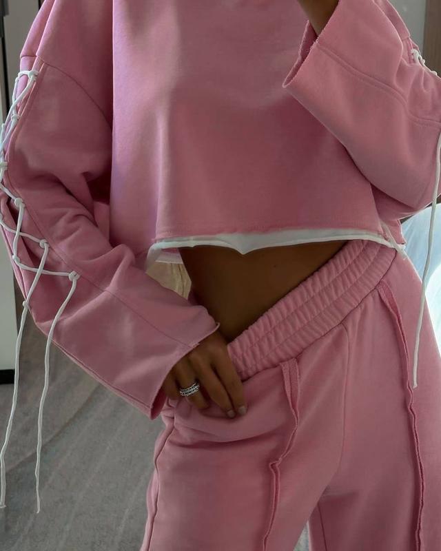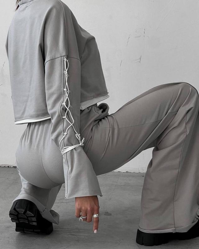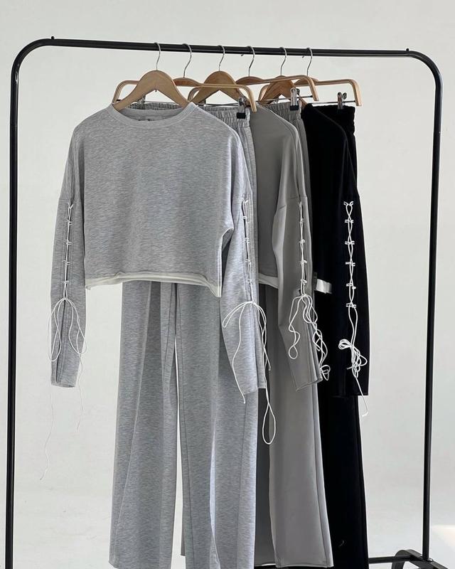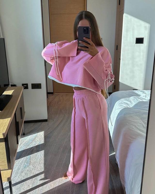 Нууу дуже стильний костюмчик на кожен день 💔 Актуальні штани палаццо із зовнішніми швами і вкорочена кофтинка з цікавим акцентом на рукавах 😍