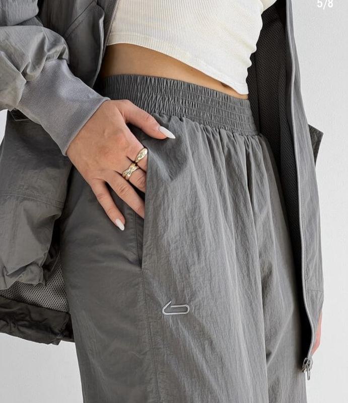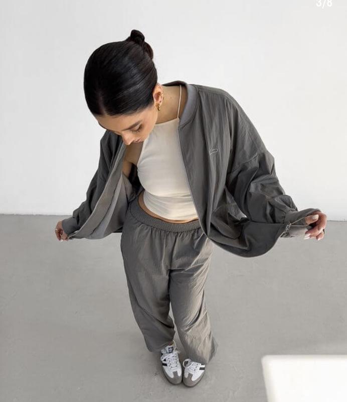 В ідеальному стані! Розмір М. Подовжений Бомбер на застібці з утяжками знизу. Штани з високою посадкою, знизу затягуються. Крой оверсайз.