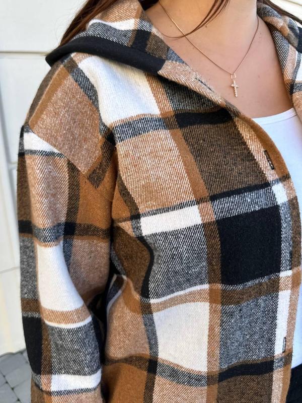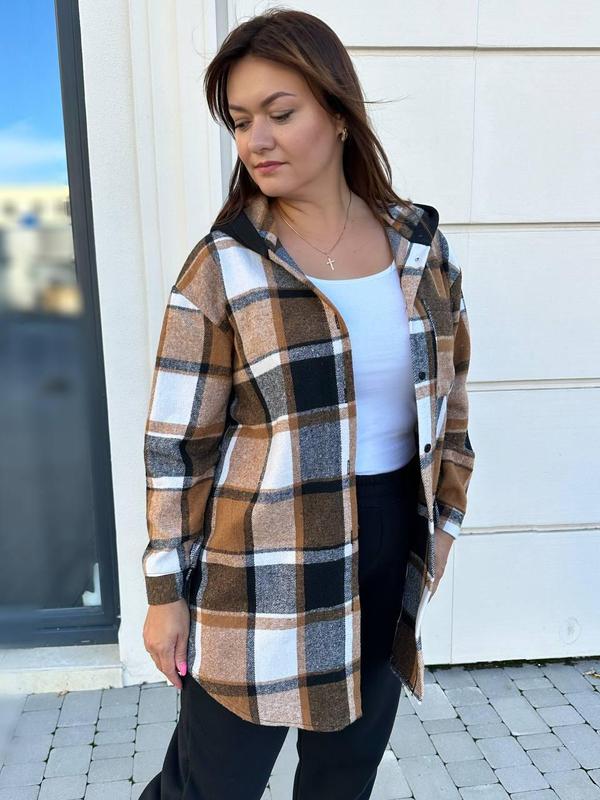 Сорочка в клітинку, на гудзиках, з подвійним капюшоном. Довгий рукав на