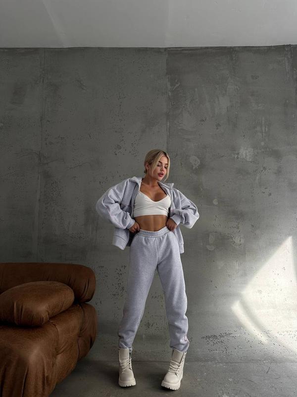 🍓Фото реал 🤩Теплий костюм Мод:696 Тканина: Якісна триніть на флісі Розміри:42-46;48-50 Кольори: меланж, чорний, ніжно-рожевий ✅Тканина дуже приємна до тіла ✅Відмінна посадка штанів ✅Комфортний та зручний