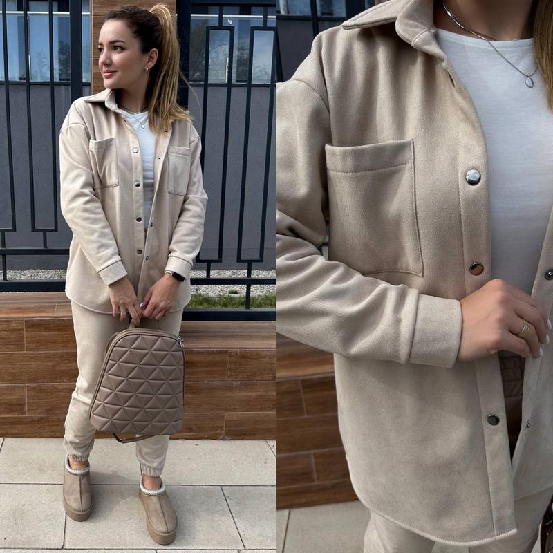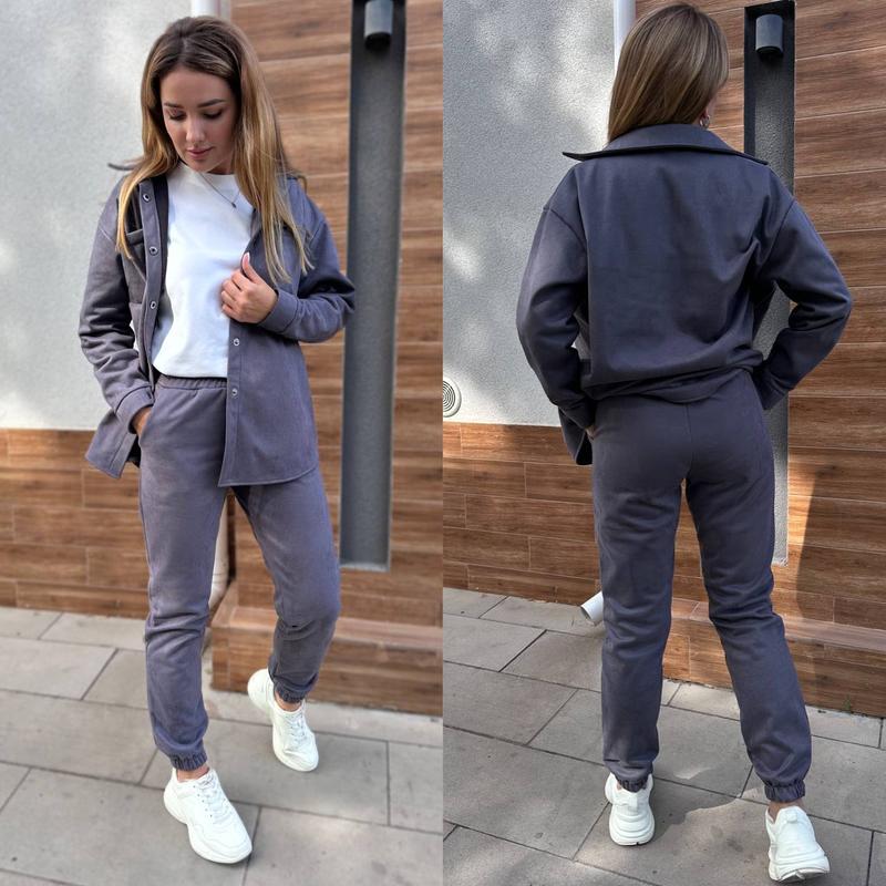 Костюм сорочка з карманами, застібається на кнопки, штани талія на резинці, з двома карманами, низ штанів на резинці