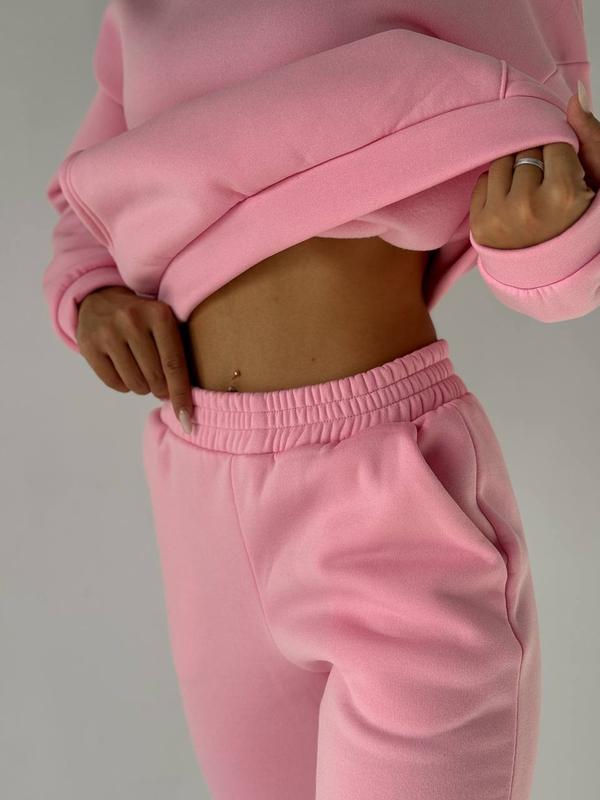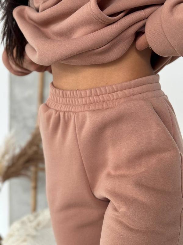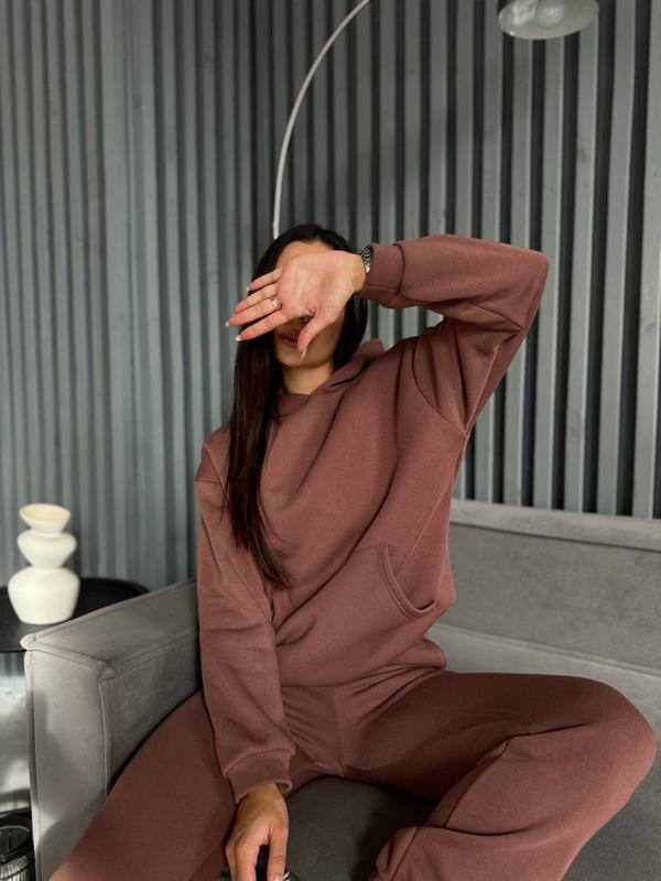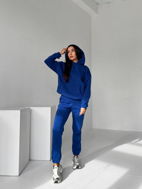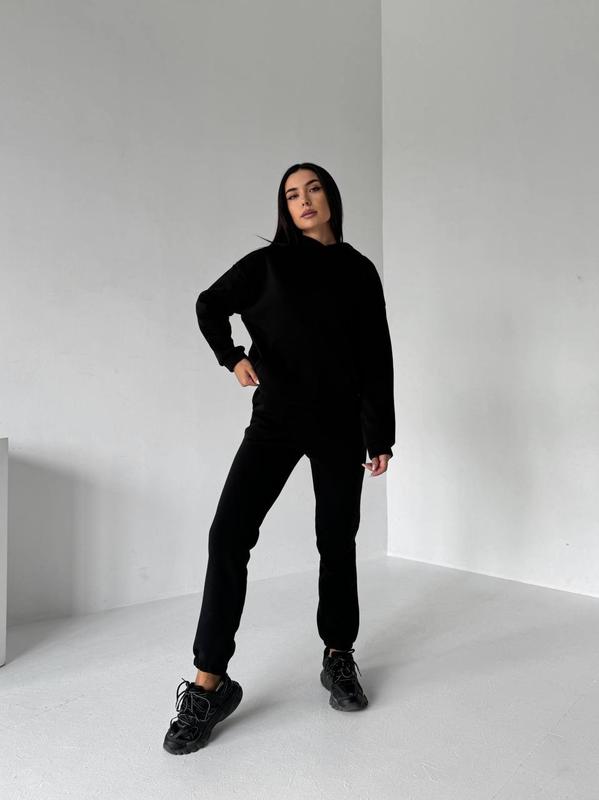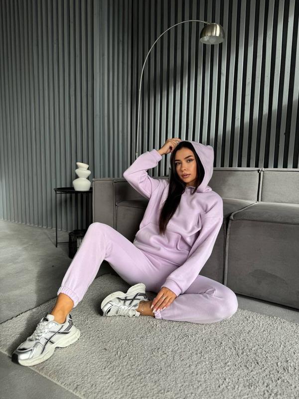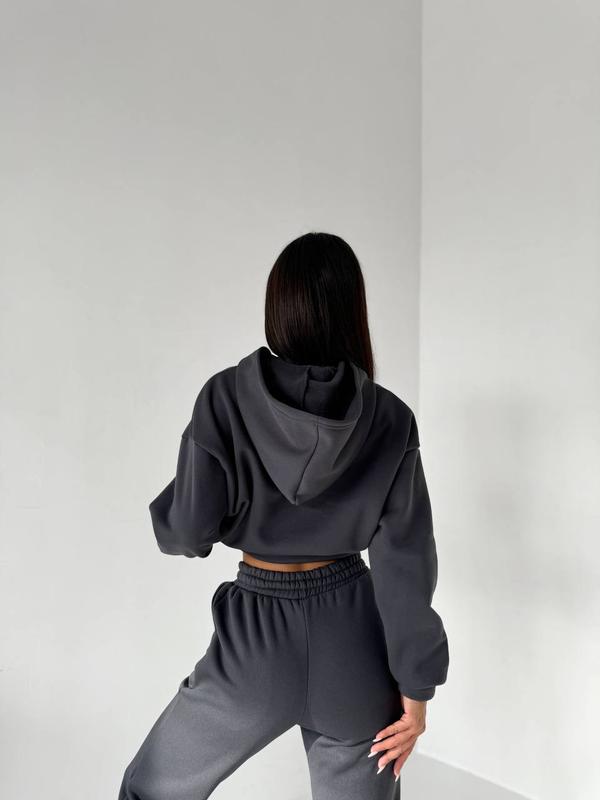 Модель оверсайз, спущені плечі, штани джогери внизу на резинці.