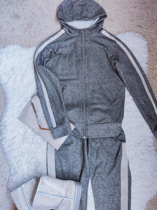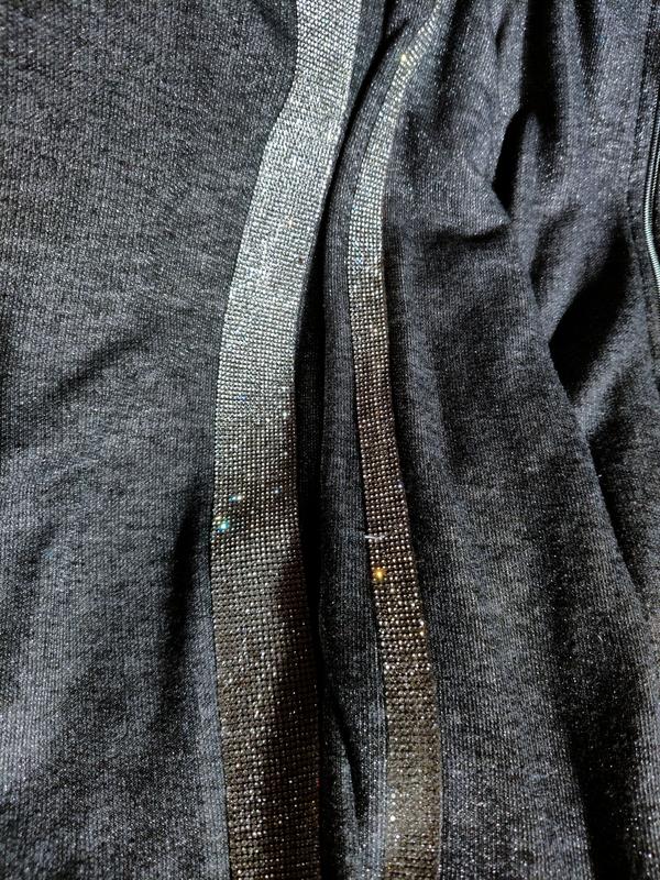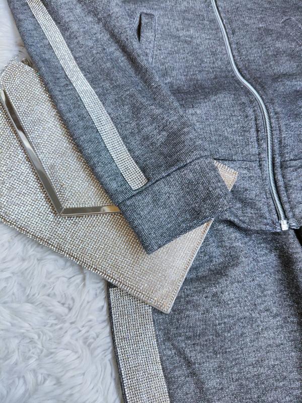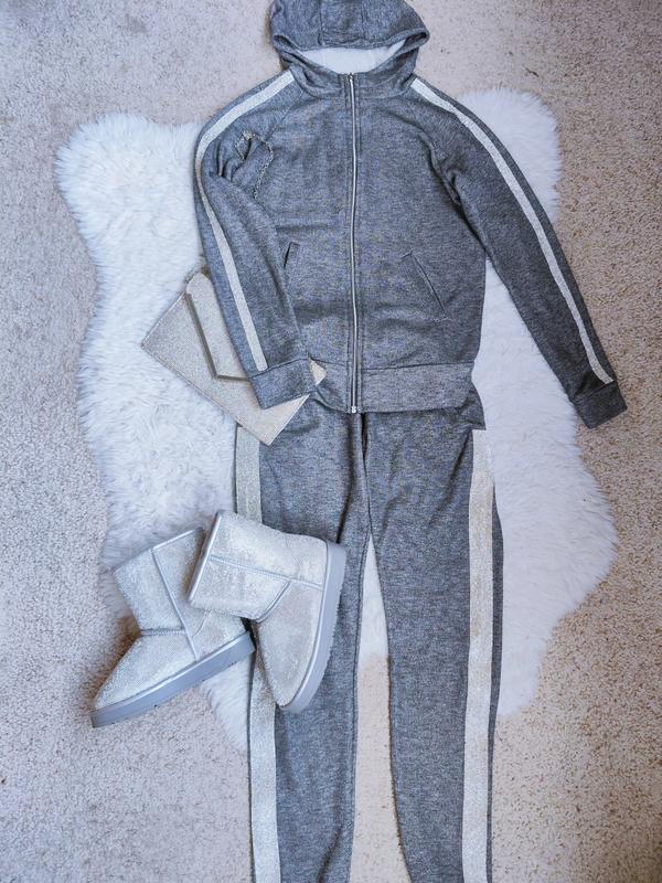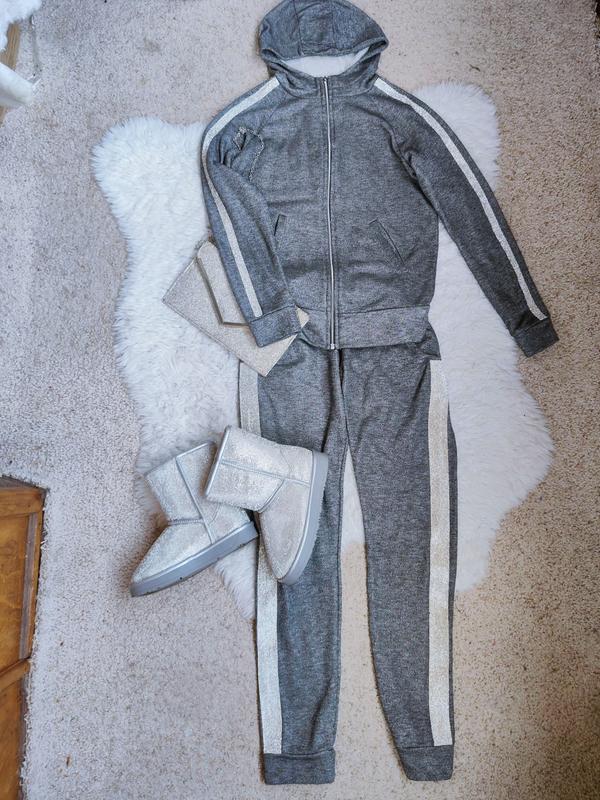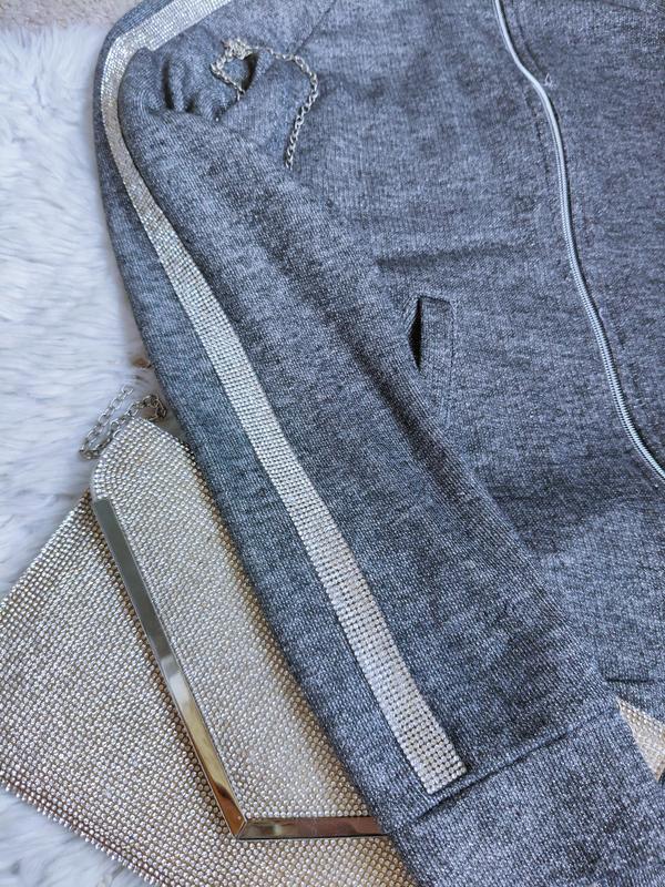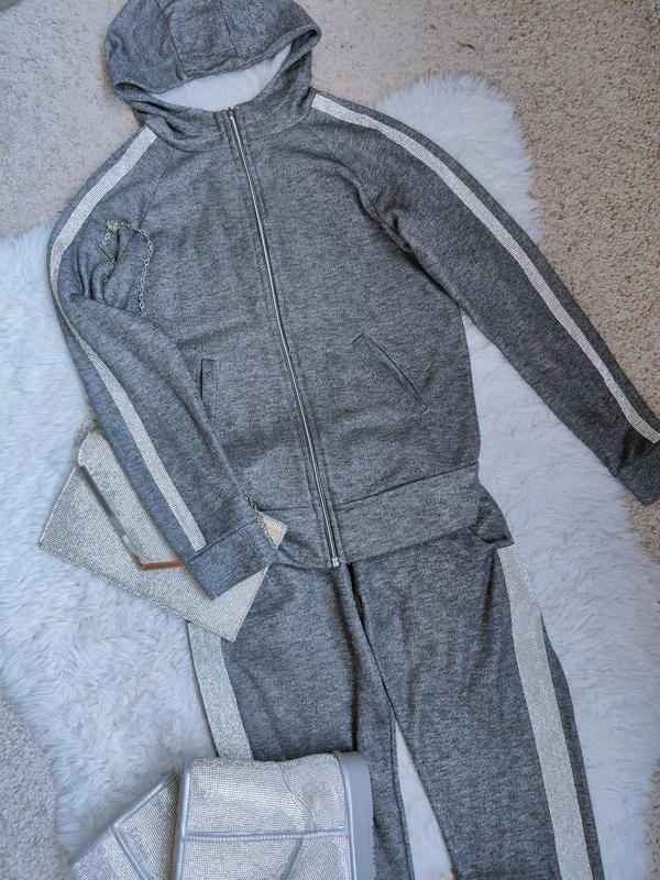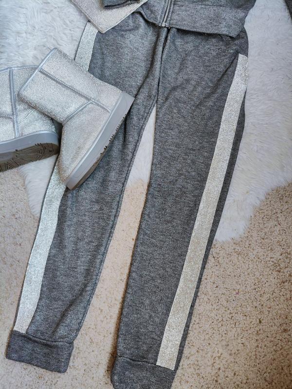 Спортивний костюм на легкому флісі,з люрексом та з лампасами зі стразового полотна,дуже гарний,сяє неймовірно гарно,розмір S.