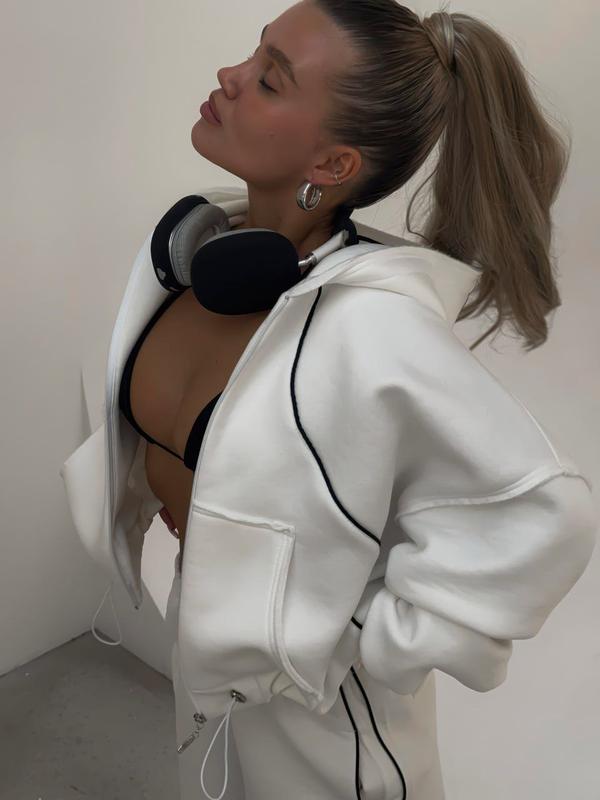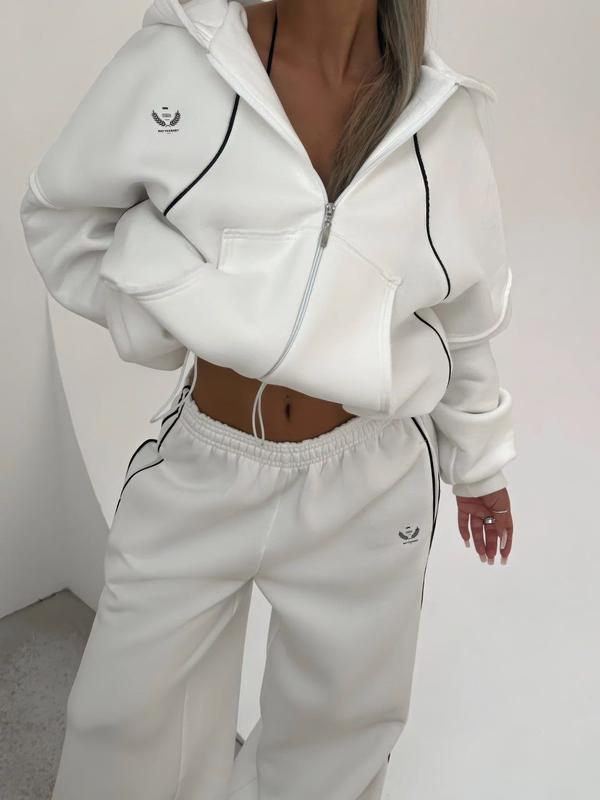 Спортивний костюм oversize чудово підійде для будь-якого випадку. Зручний, виглядає дуже стильно. Штани на високій посадці, з кишенями, кофта на блискавці, внизу регулюється резинками.