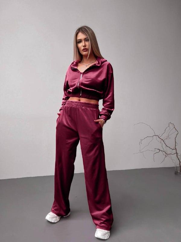 В наявності велюровий костюм: двійка без топа; трійка з топом; кофта з капюшоном на змійці; пояс на резинці; брюки з кишенями, пояс на резинці Матеріал: Велюр спорт. Виробництво: Туреччина. Колір: беж, мокко, слива, малина, марсала,олівка,смарагд, блакитний, електрик, графіт, чорний 660 грн без топа 750 грн з топом Розмір: с-м (42-44) Об.гр. 92-98 Об.ст. 90-96 см. Об. талії 64- 72 см. Довжина кофти 48 см. Довжина штанів 108 см. Довжина рукава 73 см. Розмір: м-л (46-48) Об.гр. 102-108 см. Об.ст. 100-106 см. Об. талії 70-78см Довжина кофти 49 см. Довжина штанів 109 см. Довжина рукава 74 см look