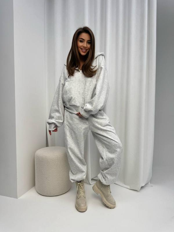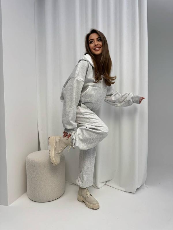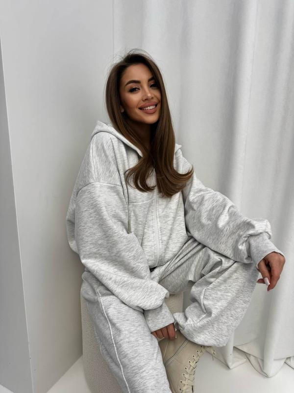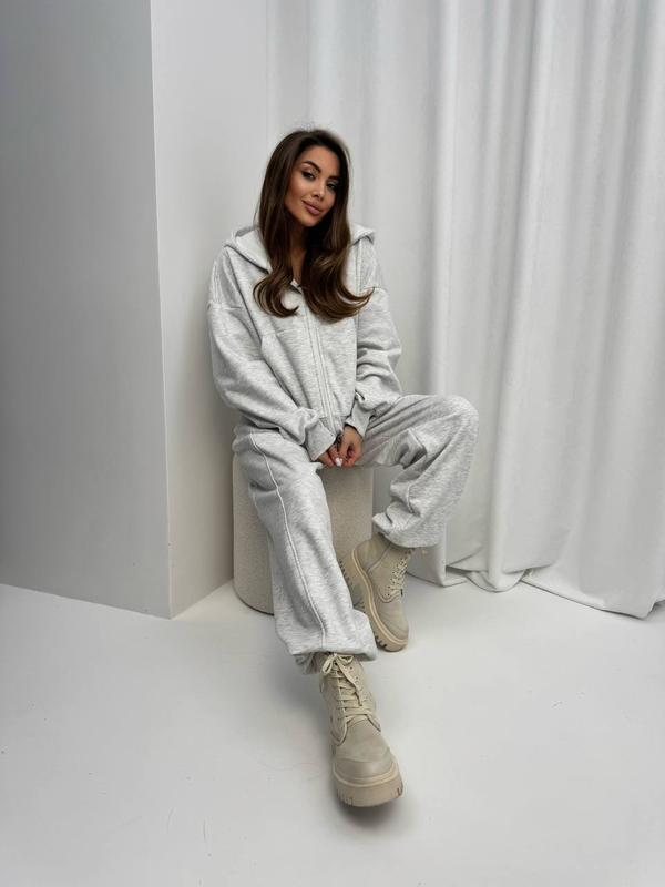 Ультра модний костюм зі штанами Baggy 💫 ⚜️мод.599 ⚜️тканина: intersoft на хутрі (100%бавовна) Туреччина ⚜️розмір. універсал ⚜️колір. графіт, меланж груди 128 рукав з плечем 78довжина 55талія 60-84стегна 126довжина 105
