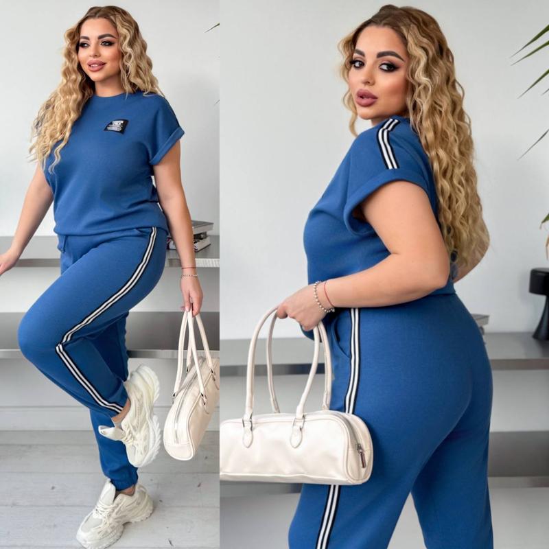 Жіночий спортивний костюм на літо з лампасами до 60 розміру