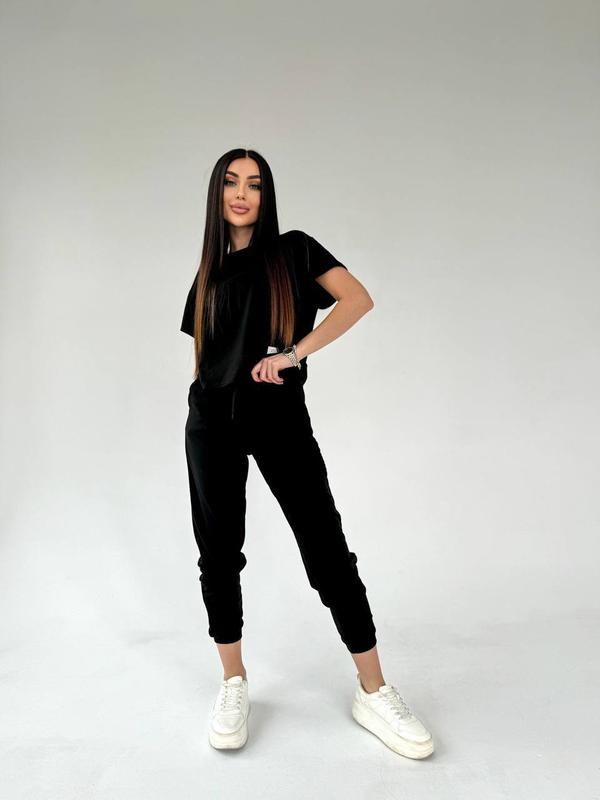 Женский летний спортивный прогулочный костюм с футболкой и штанами джогеры Жіночий літній спортивний прогулянковий костюм з футболкою в штанами фото реал (вкорочена футболка +джогери) 🏷 Ціна - 664 грн ⠀ ▫️Розміри: 42-44, 46-48 (заміри є на фото) ▫️Тканина: двунитка ▫️Кольори: мʼята, чорний, сірий, електрик, малина ⠀ Модель 240 💙 Підписуйтесь на мою сторінку 💛 💛 Кожен день на Вас чекають новинки 💙 💙 Одягу, взуття та аксесуарів 💛