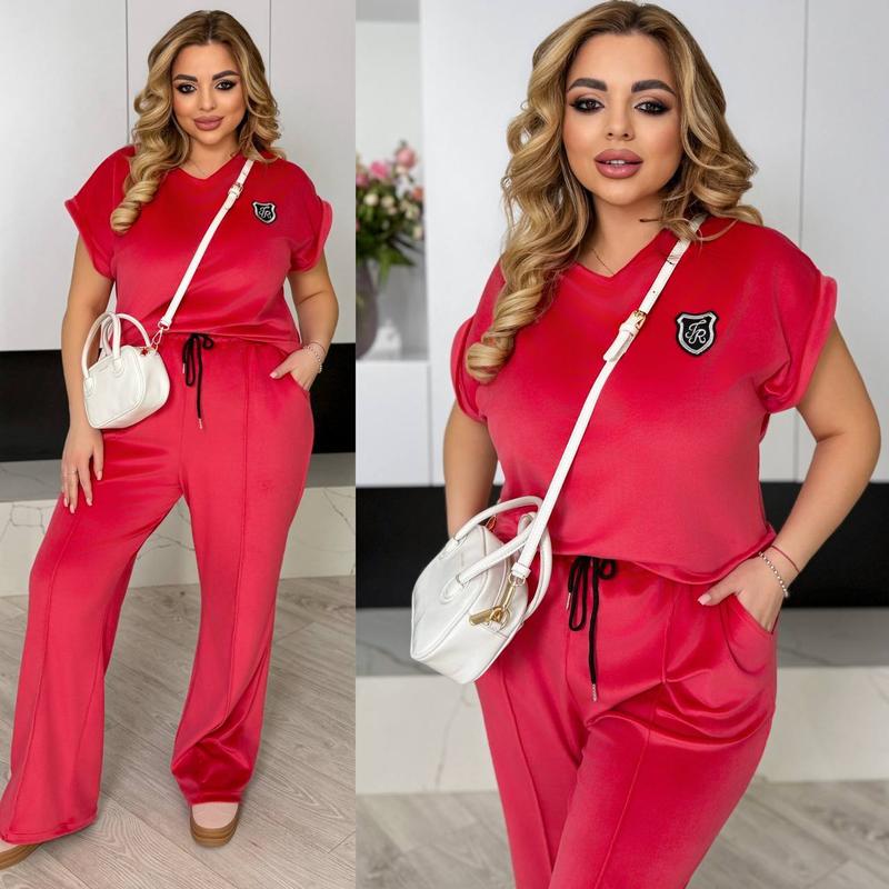 Мод. 145sof ( Спортивний костюм із велюру: футболка + штани ) . Розміри: 48-50, 52-54, 56-60 Параметри по готовому виробу без розтягування: ОГ футболки/ ОС штанів: 48-50: 112-114/114-116 52-54: 122-124/124-126 56-60: 132-134/134-136 Довжина футболки/довжина рукава від горловини / ширина рукава (посередині): 48-50: 65/22/44 52-54: 66/23/46 56-60: 67/24/48 Довжина штанів ззовні/внутрішн.: 48-50: 112/83 52-54: 113/83 56-60: 114/83 Сім кольорів: - чорний - малина - синій - зелений - беж - шоколад - графіт Тканина: якісний велюр ( бавовна 85% синтетика 15%) , добра розтяжність. Мʼяка та приємна на дотик. Прання у делікатному режимі за темпер 30°С. Опис: Стильний спортивний костюм з велюру. Футболка трохи вільна з манжетом на рукавах та з аксесуаром. Штани прямі, з кишенями у бокових швах, з високою посадкою. Пояс на гумці. P.S.На моделях розмір костюма:52-54(вільно)