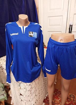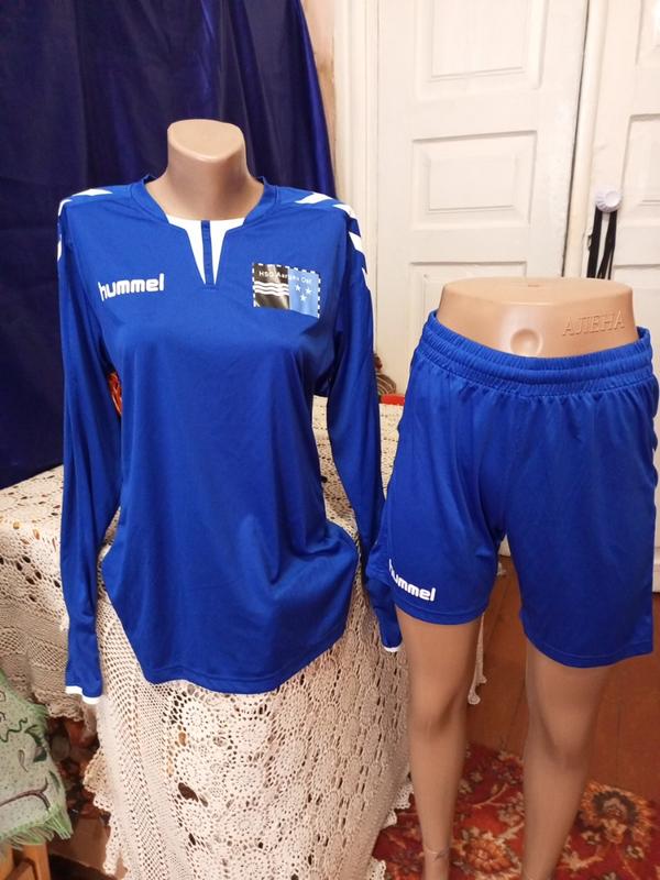 дуже гарний синій Костю. Тканина ластікова, добре тягнеться. Йде овертайм, розмір вказано с, підійде і на м, Л. опис стан отлічний Лонг слів:довжина рукав ширина груді шорти:довжина 39 пояс і пот 32 ширина бедер 56 посадка 29