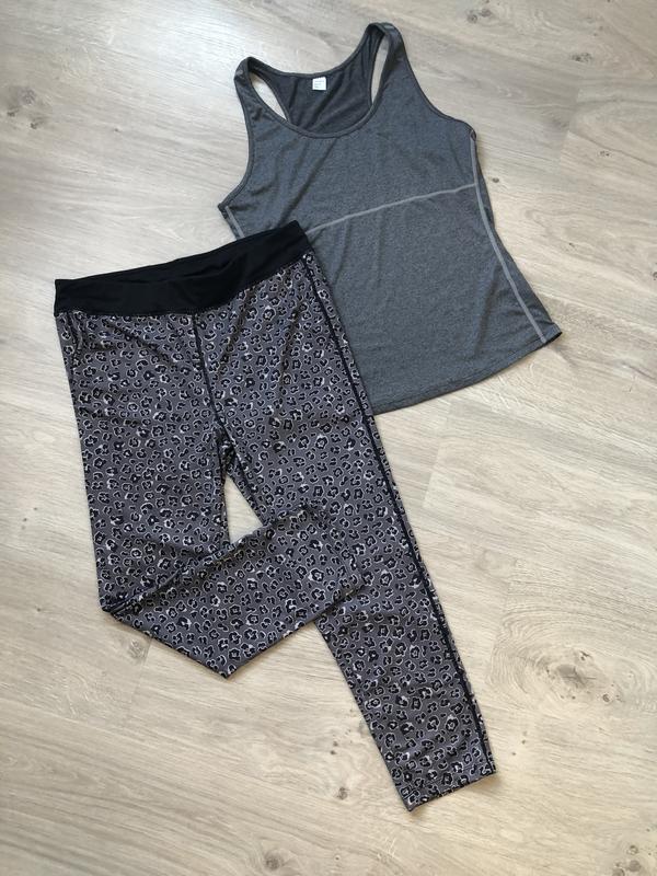 №374,64 Костюм для фітнесу. Бренди різні. Бриджі розмір L Бриджі підійдуть на розмір L-XL (46-48) Бренд Crivit Бриджі з дуже гарним принтом, не просвічуються. Стан ідеальний, слідів шкарпетки немає!!! Майка розмір L Стан ідеальний. ЗАМІРИ БРИДЖІ: -довжина-довжина крок.шва- -ширина в поясі- -ширина в стегнах - ЗАМІРИ Майка - довжина від плеча-60 см, ширина під руками - 46 см ( повністю 92 см ) Тягнеться.