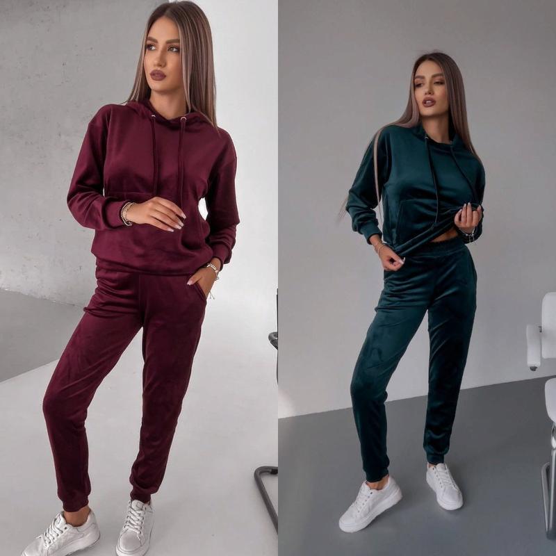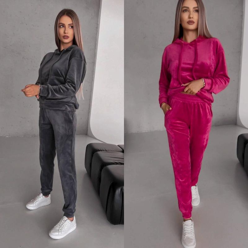 Велюровий костюм з капюшоном та кишенею кенгуру 💝