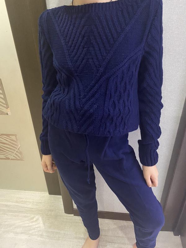 Зручний в'язаний трикотажний костюм для прогулянок. Розмір UNI 42-46. Склад 50% -акрил, 50%-бавовна. В наявності темно-синій, бордовий. Заміри і більше фото вишлю додатково.