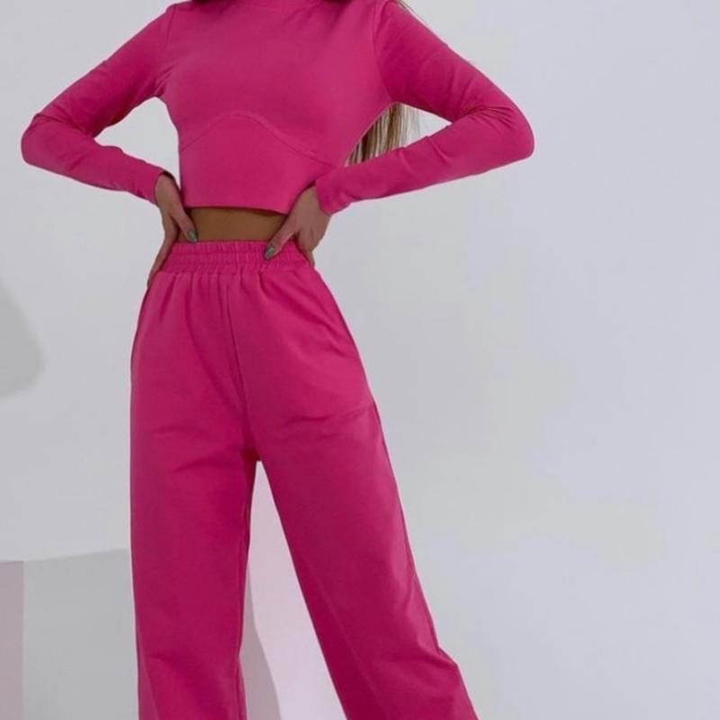 Турецька двунить ------ Жіночий спортивний костюм з кюлотами «Парабола»пудра Ціна -455 грн Розмір - 42-44 та 44-46 Тканина - двунить Туреччина Колір - беж чорний малина олива Особливості - широкі штани - кюлоти з високою посадкою, укорочений топ Н❤️