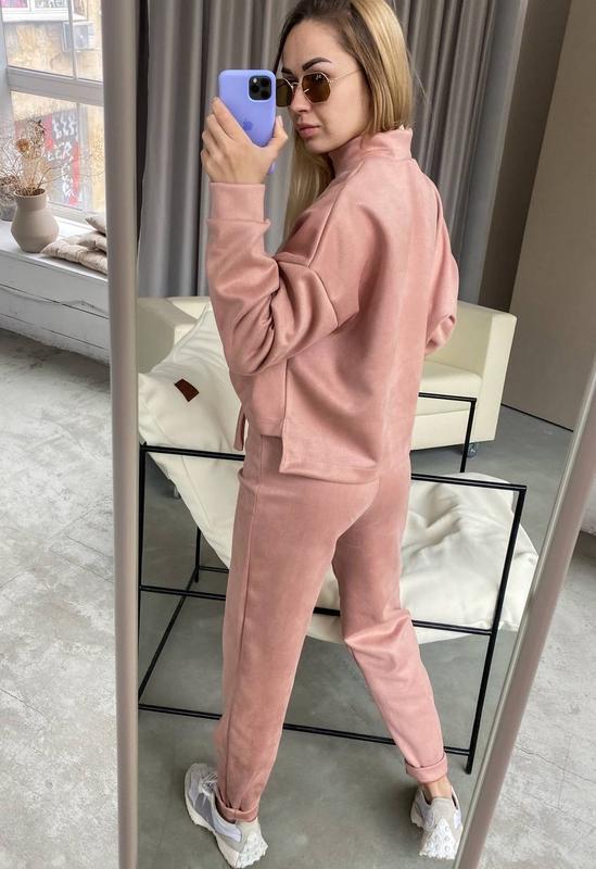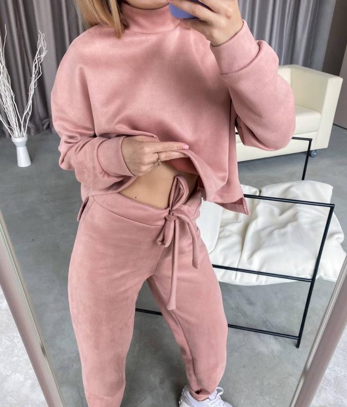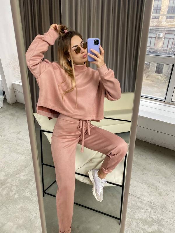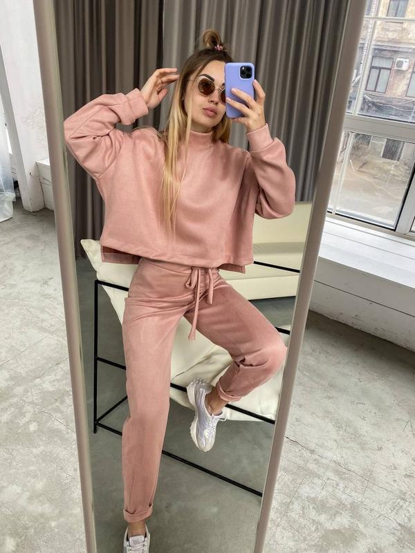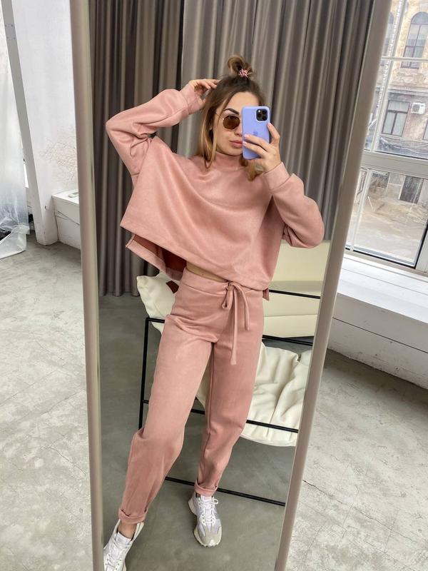 💜в наявності у великій кількості 💜 Костюм Фото в живу. арт.0237 розмір: 42-44, 44-46 - 540 грн Розмір:48-50 - 570 грн тканина: щільний замш на дайвінг. колір: мокко, пудра, гірчиця, фіолетовий, бордо. Зростання моделі 160 див. Штани з високою посадкою, талія регулюється шнурком з основної тканини, брюки без манжета, завужені до низу. Кофта вільного крою, плечі спущено. Ідеальна посадка костюма!