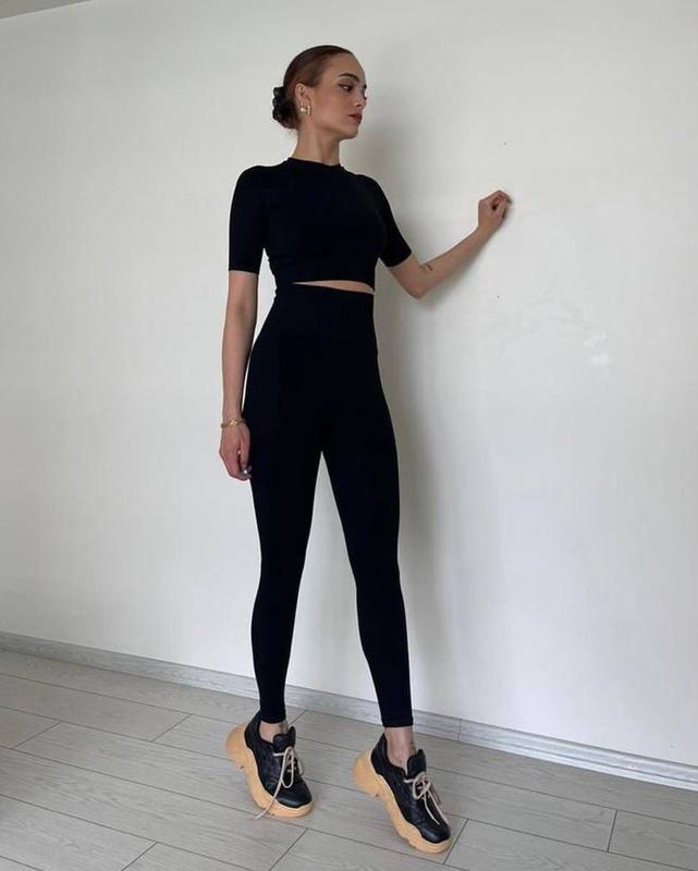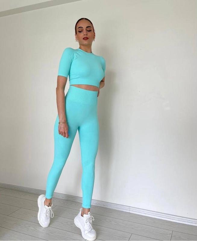 спорт костюм Топ і лосини Ціна 1500 грн Розмір с/м і м/л Чорний рожевий мінт Склад-92% поліестер, 8% еластан Виробництво Туреччина