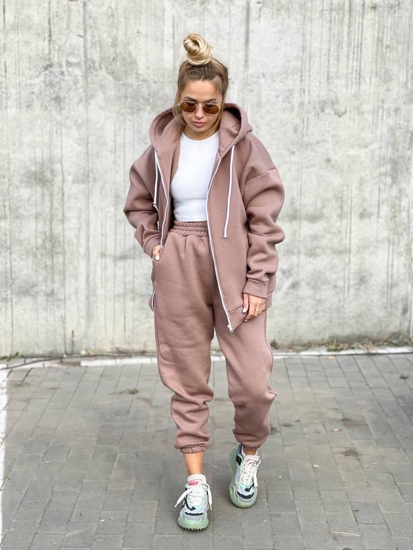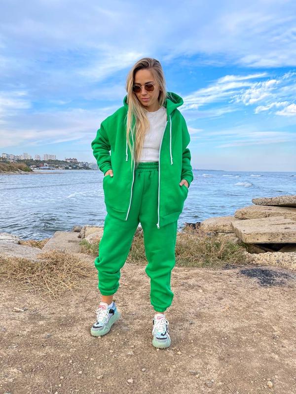 🥥в наявності всі кольори🥥 Костюм Арт.0421 Тканина: трехнить з начосом( виробництво Туреччина. 85%бавовна, 15% поліестер, не скочується) Розмір: 42-44,46-48 Колір: трава, чорний, бежевий Ціна 870 грн Зріст 160 см Костюм-двійка oversize, виконаний з якісної турецької тканини. Теплий, ідеально для сезону осінь-зима. Костюм об'ємний, повнорозмірний, підійде на полубатальные розміри Кофта вільного крою,застібається на блискавку. Подвійний капюшон. Штани на високій посадці, на гумці, манжет на резинці. Кишені функціональні.
