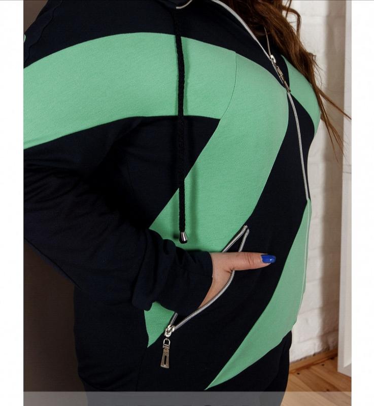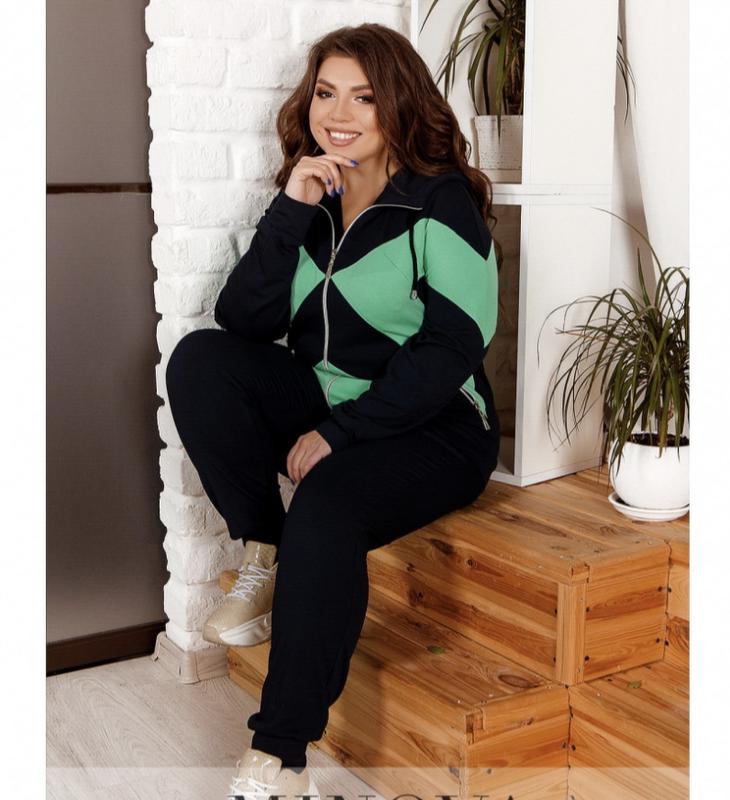 Яскравий спортивний костюм батал з вітровкою та брюками. Вітрівка з капишоном, через капишон пропущено шнурок, відчини укріплені люверсами. Застібка - блискавка спереду по центру. По боках - прорізані кишені з блискавками. Рукава з м'яким якими манжетами. Штани з високим насадом та вшитою до поясу резинкою, мають кишені у швах по боках внизу на які манжети. МАТЕРІАЛ: Трикотаж двохнитка РОЗТЯЖНІСТЬ: Середня розтяжність (2-4см) КОЛІР: Лаванда, Лайм, Синій-ментол, чорний-гірчиця, чорний-червоний, синій - пудра Орієнтовні заміри готового виробу: Кофта: ☑️50-52 р-р: довжина виробу: 70см, обхват рукава 38см, довжина рукава від горловини 75см, ОГ - 112см, ВІД - 110см, ПРО - 110см. ☑️54-56 р-р: довжина виробу: 71см, обхват рукава 40см, довжина рукава від горловини 76см, ОГ - 120см, ВІД - 118см, ПРО - 118см. ☑️58-60 р-р: довжина виробу: 72см, обхват рукава 43см, довжина рукава від горловини 77см, ОГ - 128см, ВІД - 126см, ПРО - 126см. ☑️62-64 р-р: довжина виробу: 73см, обхват рукава 45см, довжина рукава від горловини 78см, ОГ - 136см, ВІД - 134см, ПРО - 134см. Штани: ☑️50-52 р-р: довжина штанів по внутрішньому шву 76см, довжина штанів по зовнішньому шву з урахуванням пояса 105см, ВІД - 78/110см, ПРО -112см. ☑️54-56 р-р: довжина штанів по внутрішньому шву 76см, довжина штанів по зовнішньому шву з урахуванням пояса 106см, ВІД - 86/118см, ПРО -120см. ☑️58-60 р-р: довжина штанів по внутрішньому шву 76см, довжина штанів по зовнішньому шву з урахуванням пояса 107см, ВІД - 94/126см, ПРО -128см. ☑️62-64 р-р: довжина штанів по внутрішньому шву 76см, довжина штанів по зовнішньому шву з урахуванням пояса 108см, ВІД - 102/134см, ПРО -136см. РЕКОМЕНДАЦІЇ ПО ДОГЛЯДУ: делікатне прання ☑️Відеоогляд 🔹Оплата на картку Приватбанку 🔹Накладний платіж по передоплаті (Нова пошта) 🔹Обмін/ Повернення ☑️Зазвичай на збір замовлення йде від 1-го до 4-х робочих днів. З радістю відповім на ваші запитання, допоможу підібрати розмір🌷 арт.17 254