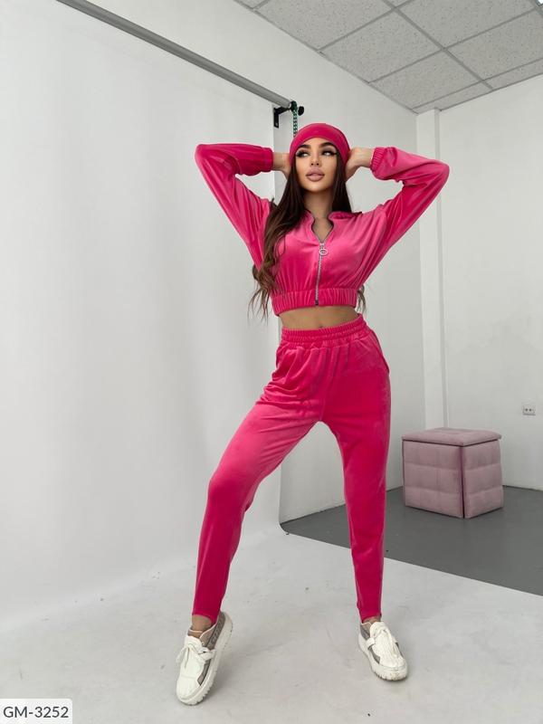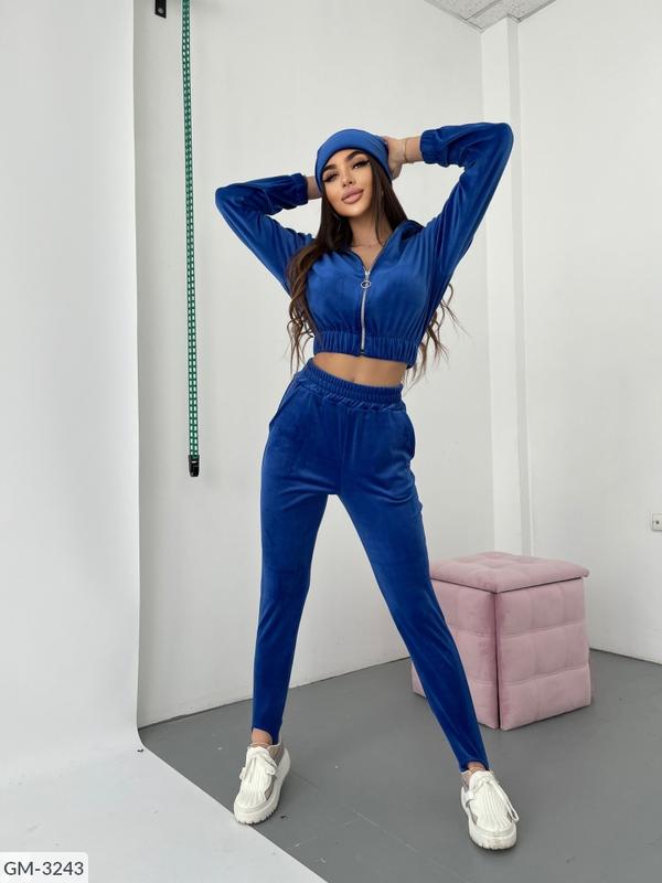 Жіночий велюровий, приємний до тіла спортивний костюм Матеріал: велюр Розміри: 42-44, 44-46 Довжина кофти: 45 см Довжина штанів: 106 см Колір: синій, малиновий Виробництво Україна Підібрати потрібний розмір можна за допомогою таблиці на останньому фото. Приємних покупок))