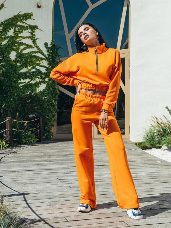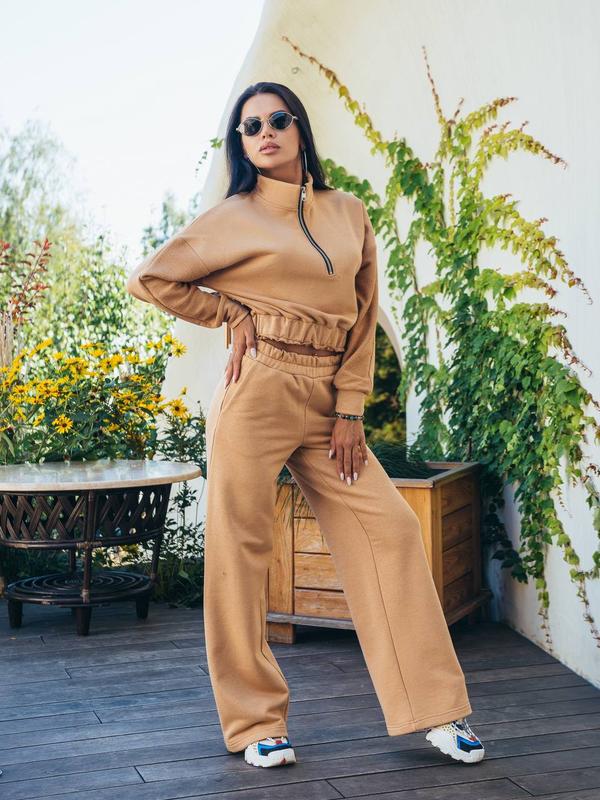 Спортивний Костюм з укороченою кофтою (металева блискавка) і прямими штанами. Костюм теплий, щільний, але без утеплювача. Катишки НЕ З'ЯВЛЯТЬСЯ. Використовуємо тканину Люкс якості 👌 Арт. Matrix Склад: 100% бавовна (турецька трехнить петля) Кольори: Чорний Бежевий Молочний Помаранчевий Кэмэл Оливковий Зелений Розмір : 42-44, 46-48
