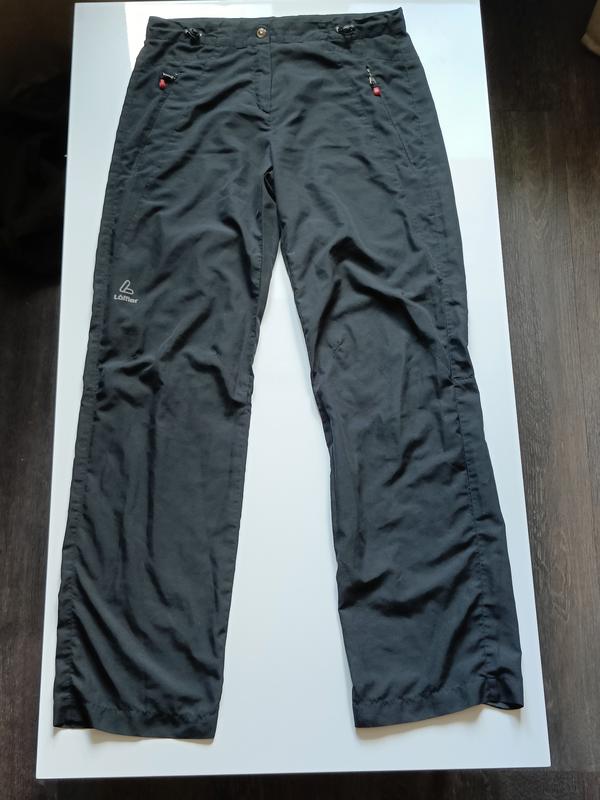 Трекінгові, спортивні жіночі штани Loffler, розмір S. Стан ідеальний, нюанс на останньому фото (внизу ззаду на штанинах сліди від черевиків, маленькі непомітні дірочки) Тонкі, легкі, поліестер. Пояс на утяжках. Дві кишені спереду на блискавках. Заміри: ширина в поясі 38 см, стегна 51 см, довжина 103 см, ширина штанини внизу 20 см.