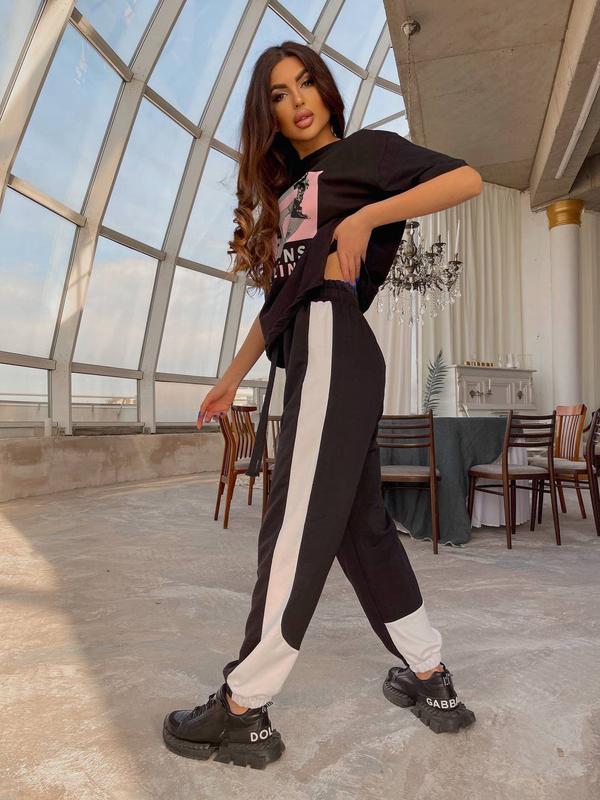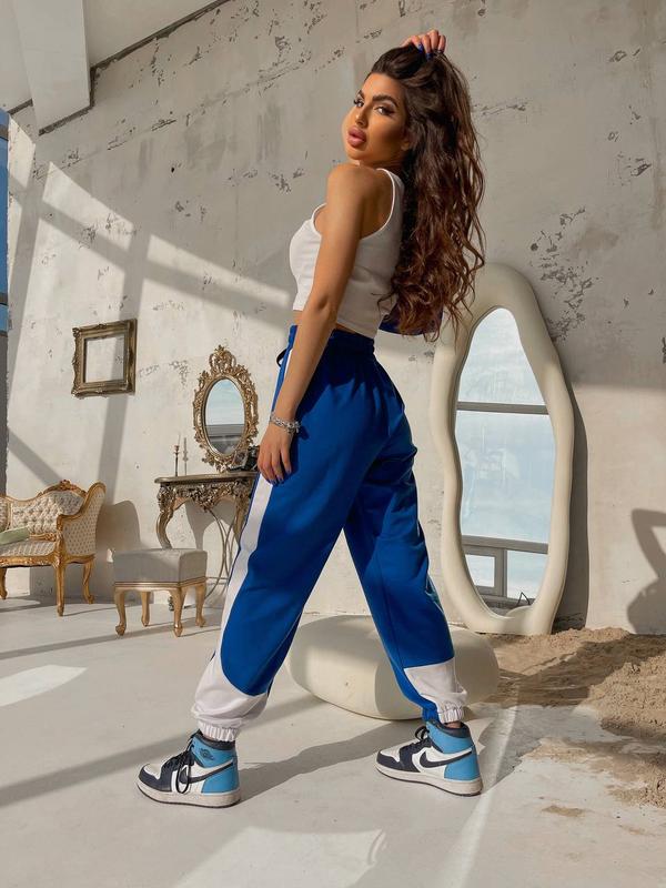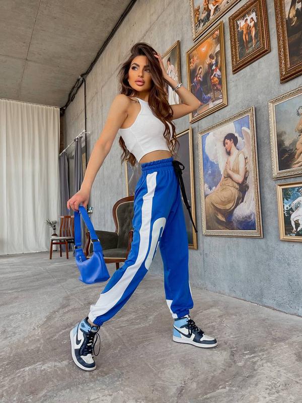 ШтаниМод 216Тканина: двохнитка ТуреччінаРозмір : 42-44, 46-48Колі:чорний,сірий ,електрик ,білий Якість люксвар)Спортивні штани у стилі oversize, з легкого та зручного матеріалуМають оригінальний вигляд ,з накаткою та високою посадкою