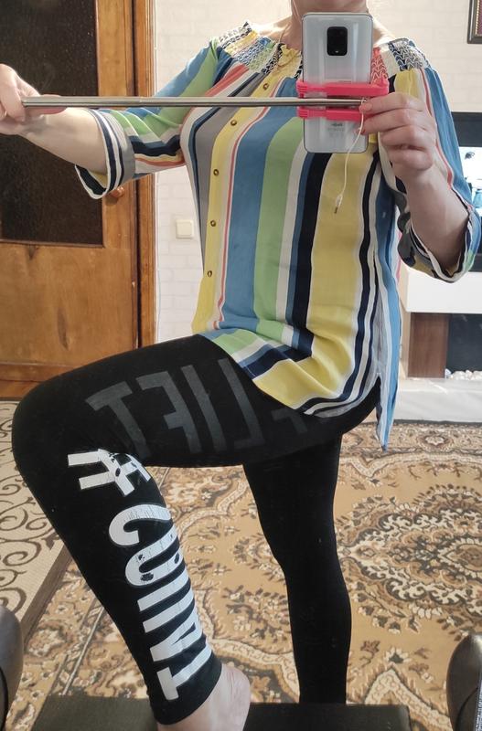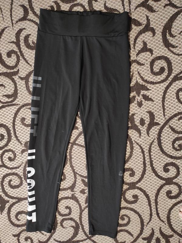 Спортивні легінси з написом збоку.Розмір XLКолір чорнийНюанс: фарба з іншого боку, і трохи спереду (на фото)