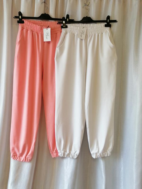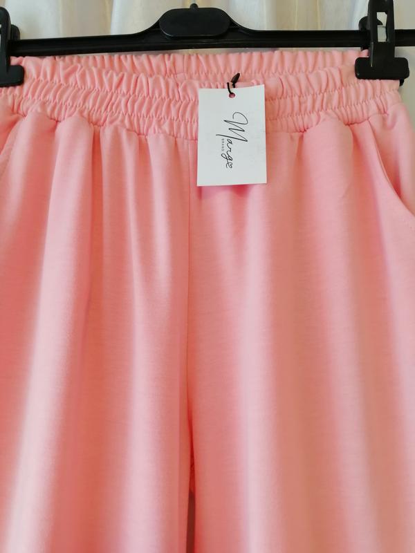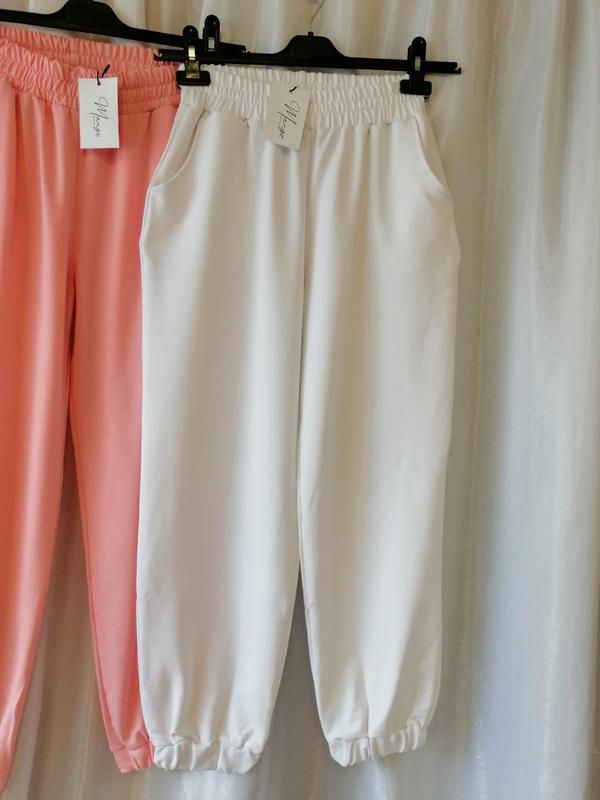 стильні спортивно прогулянкові штани джоггери відмінної якості розмір на етикетці 46-48 Широка прошита гумка дві бічні кишені напівобхват талії 30 см тягнеться на 53 см напівобхват стегон 55 см тягнеться на 74 см посадка спереду 29 см ззаду 38 см довжина штанів по зовнішньому бічному живу 94 см за внутрішнім кроком 66 см допускаю похибку вимірах плюс-мінус 1 см
