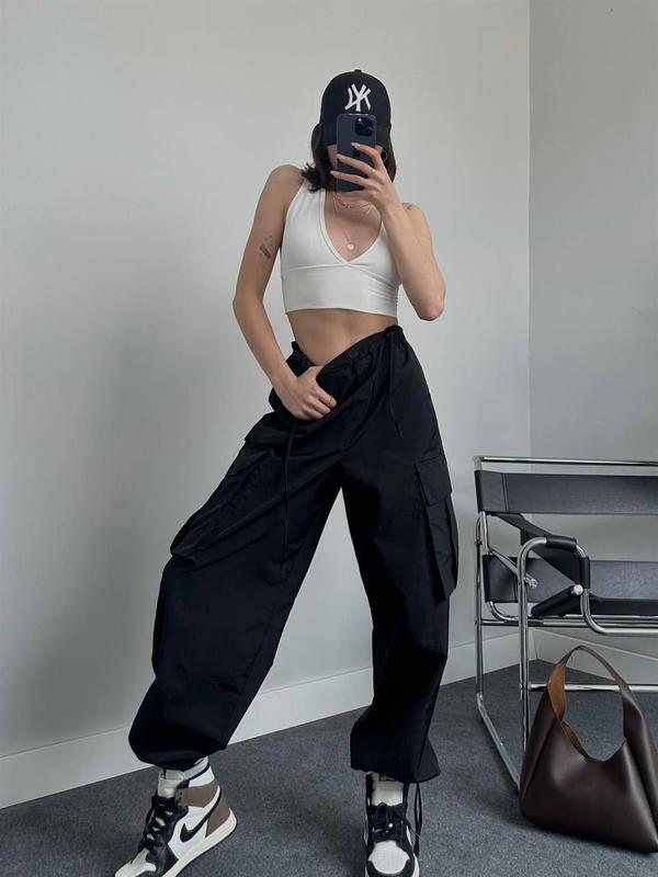 Штани мають високу посадку і широкий крій, що забезпечує комфортне прилягання до тіла і свободу рухів. Щільна плащівка забезпечує тепло і захист, а також стійкість до зносу