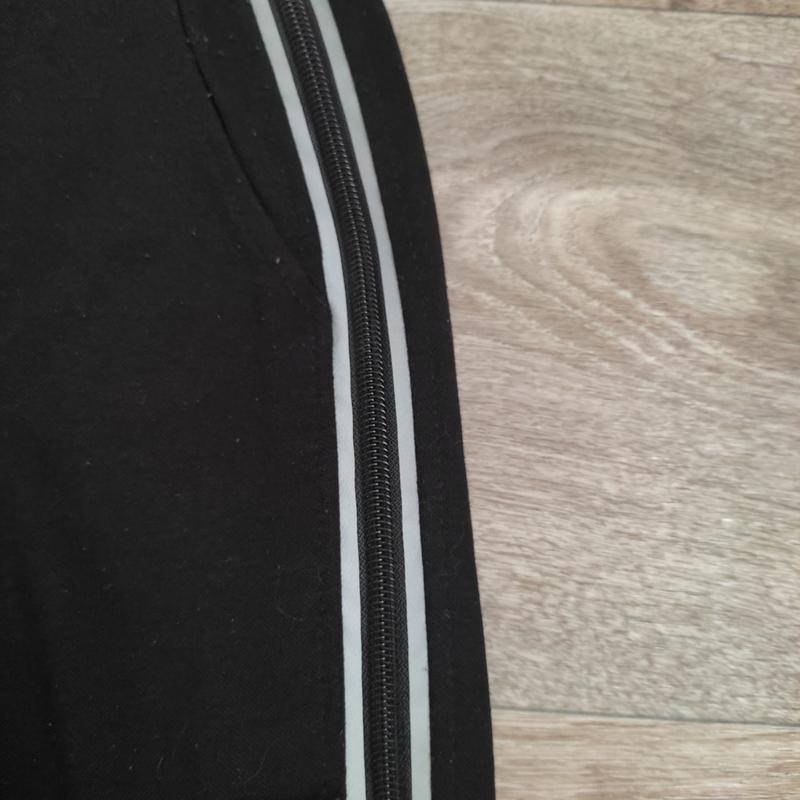 спортивні штани жіночі чорного кольору з світловидбиваючими смужками та декоративною блискавкою по боках, розмір - М.