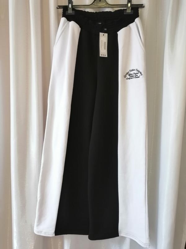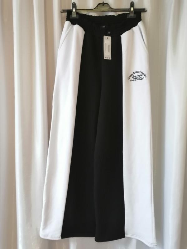 круті стильні довгі штани палаццо на флісі дуже більше мірять розмір на бирці з але за фактом йдуть 48 - 52 приблизно десь так дуже довгі Якщо ви низького зросту то вони вам точно не підійдуть супер класні але мені великі купувала собі неймовірно круті виміри талії напівобхват тягнеться на 52 см гумка прошита не перекручується, з боків дві бічні кишені, напівобхват стегон 58 см тягнеться до 76 см посадка спереду 34 см ззаду 42 см довжина штанів по зовнішньому бічному шву 114 см за внутрішнім кроковим швом 77 см допускається похибка вимірів плюс-мінус 1 см