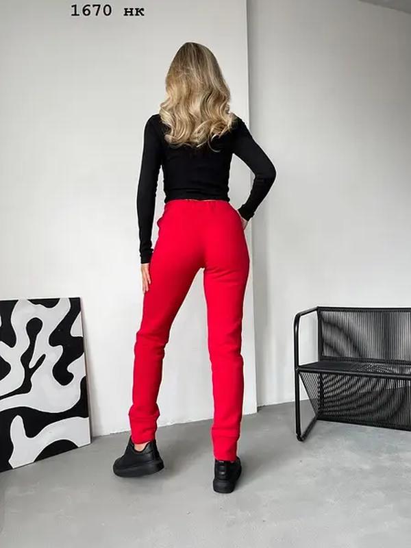 Жіночі штани на флісіРозміри - 42-44, 44-46Тканина - Тринитка на ФЛІСІ.Кольори: меланж, червоний, чорний.