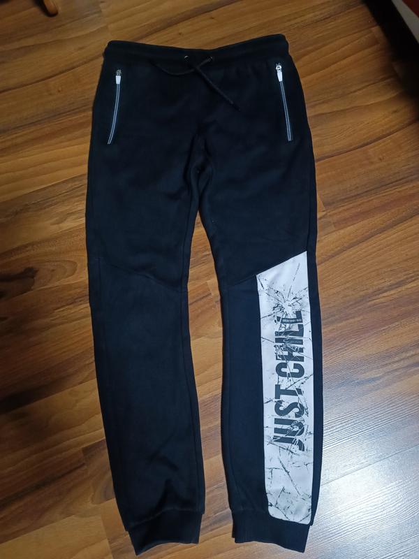 Штани на флісі, дуже гарна якісь, ідеал, длина по боковому шву з манжетом 95 см, шаговий 68 см, посадка спереду 24 см, ззаду 33 см, бедра 48 см.