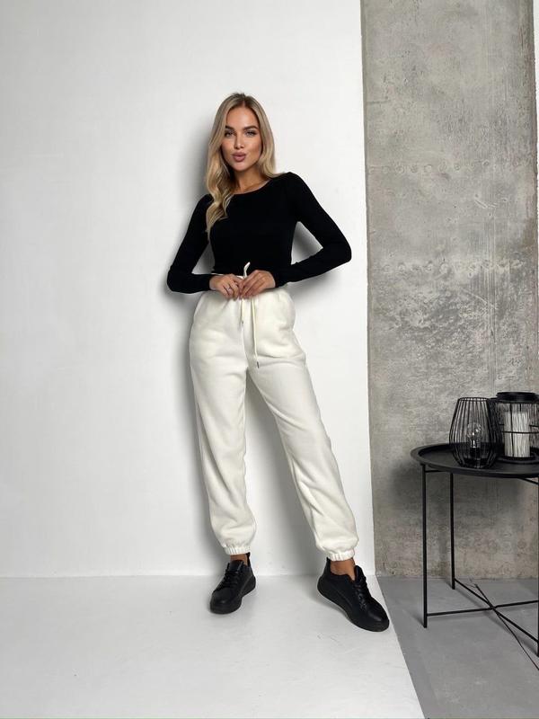 Штани✔️Модель 1695 /1451vic✔️Тканина : Поларфліс. Щільний, тактильно приємний матеріал, що зігріває.✔️Відмінна якість!✔️Кольори: молоко, графіт, шоколад, чорний✔️Розміри: 42-44, 44-46