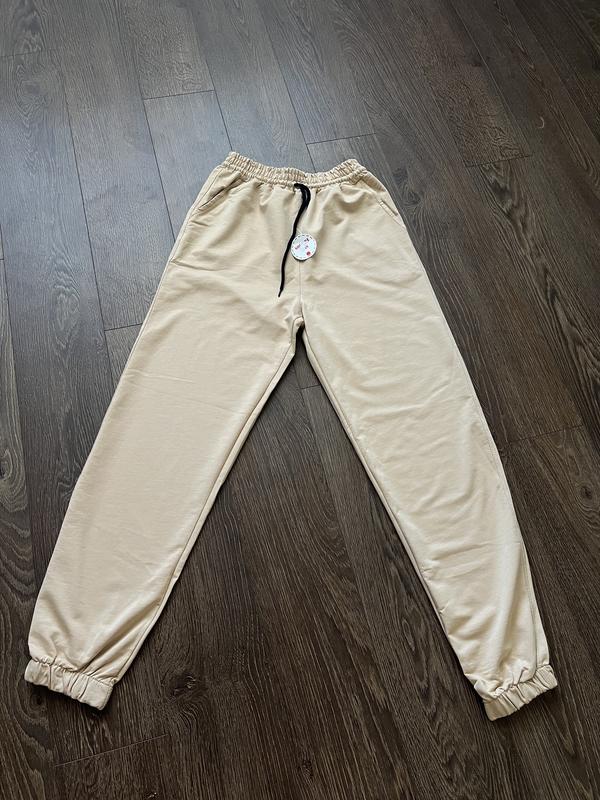 Абсолютно нові трикотажні штани на резинці На щиколотці манжет Матеріал трикотаж двунитка Розміри в наявності ХС, С, М, Л, ХЛ Кольори в наявності беж, чорний, пудра