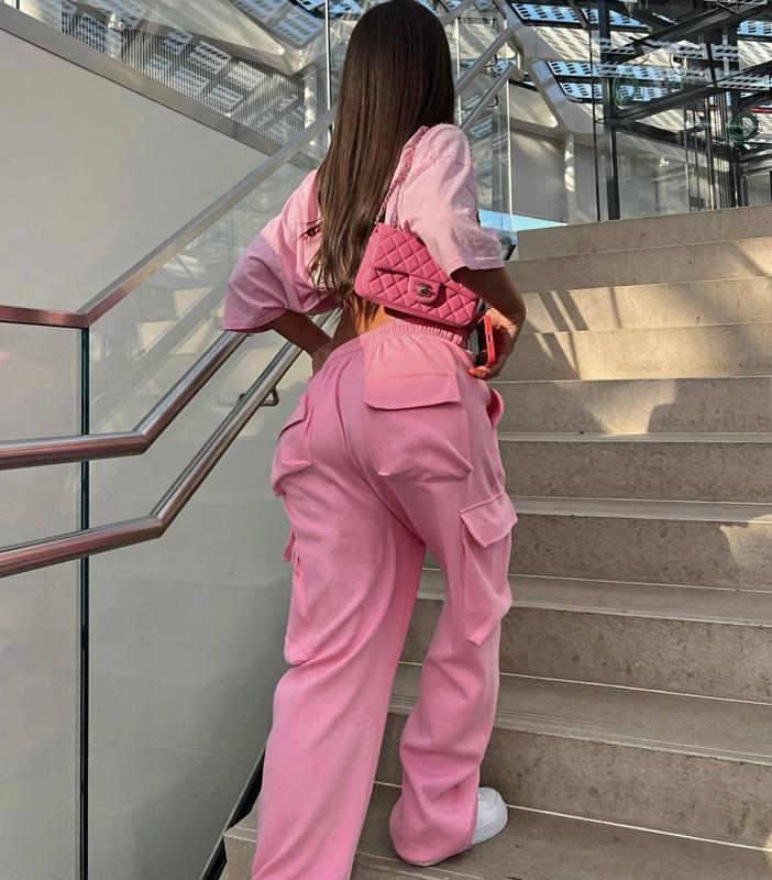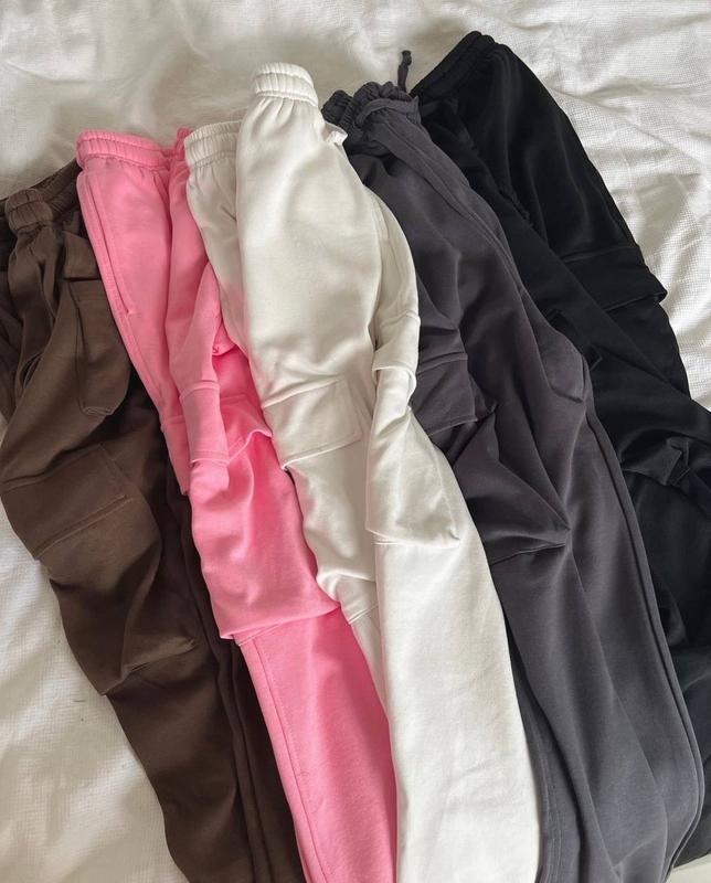 📌Модель: 4365📏Розмір: 42-46, 48-52🌈Колір: графіт, молоко, рожевий, чорний, коричневий🧶Тканина: двухнитка Турція Штани з накладними кишенями, знизу на затяжках