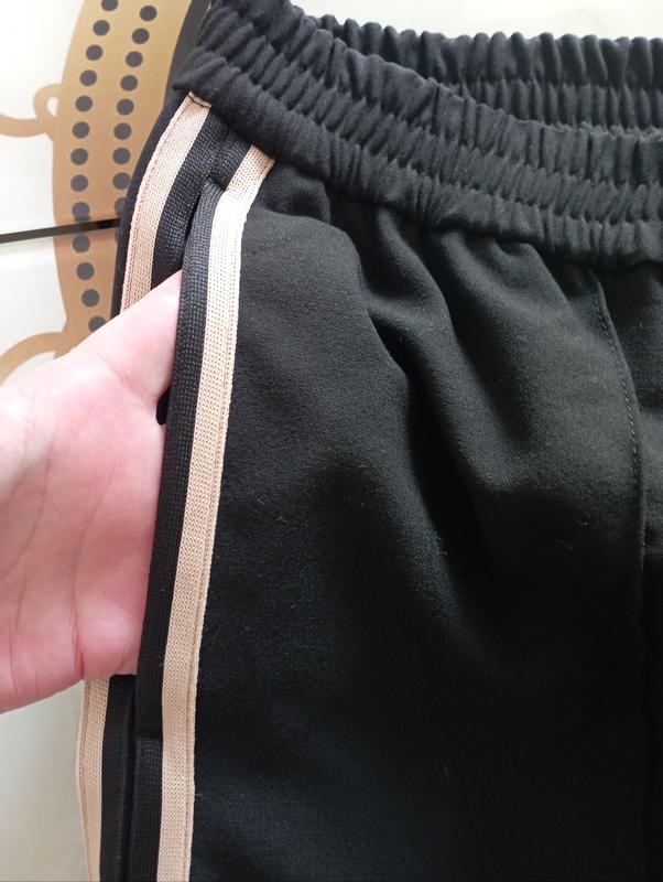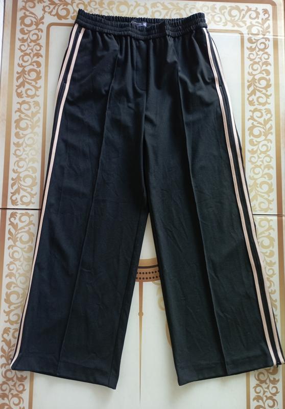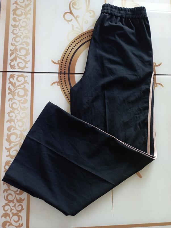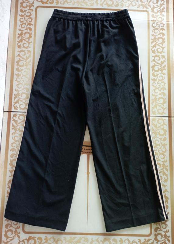 Актуальні , фірмові спортивні брюки з лампасами , з кишенями , ПІТ 38-46 на резинці , ПІБ 54-58 , посадка 29/39 , довжина виробу 98 , штаніни знизу на блискавці , розтібаються , ширина штаніни 29 .