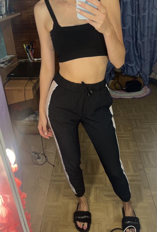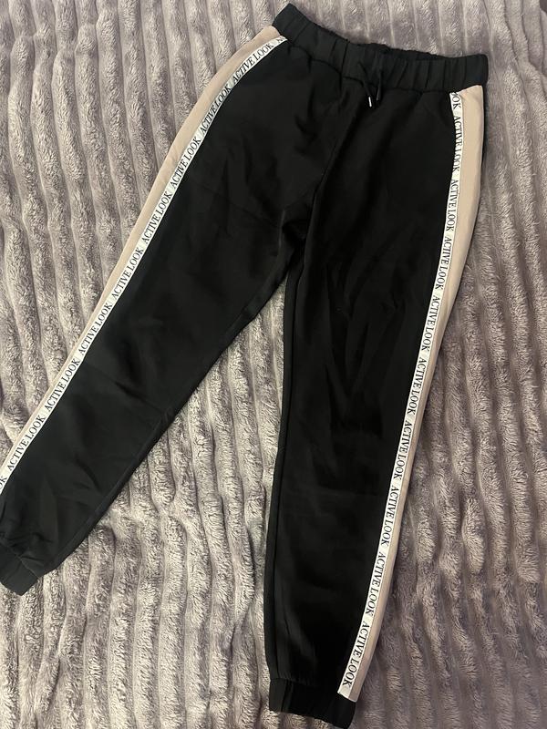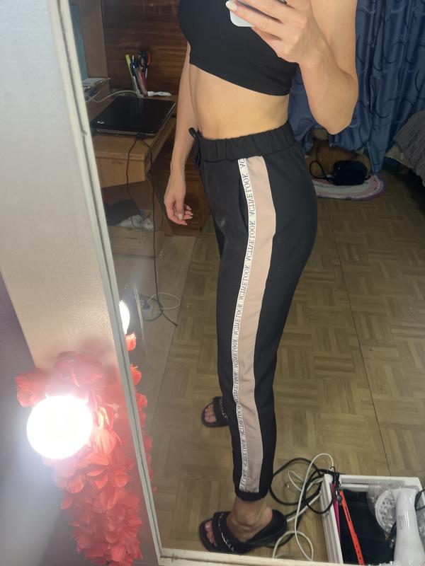 Білі штани з чорними вставками