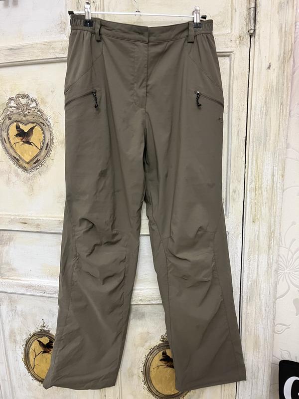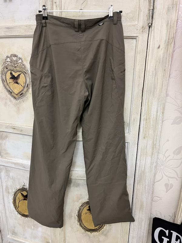 Спортивні штани прямого крою, середньої поспдки, з водовідштовхуючої швидко сохнучої тканини, яка пропускає повітря, на підкладці, дуже приємні, якісні та стильні, Розмір М, довжина 102,, внутрішній шов 79, талія на резинці, 37 см, стегна 58, шаговий шов перед 28, зад 38.