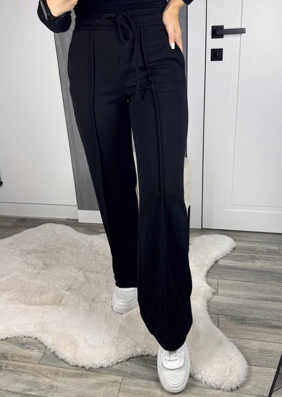 Штани прямого вільного крою з кишенями, талія на резинці та мотузці, що дозволяє легко регулювати посадку. Ідеально підходять для створення стильного та невимушеного образу.