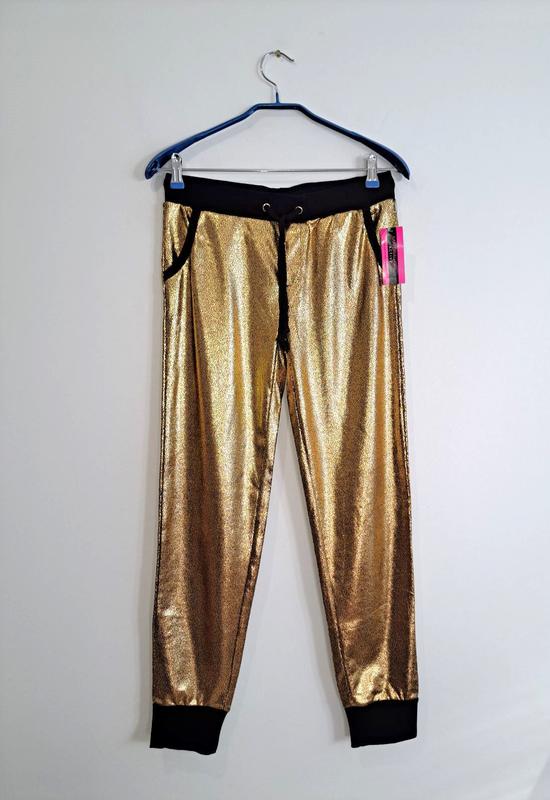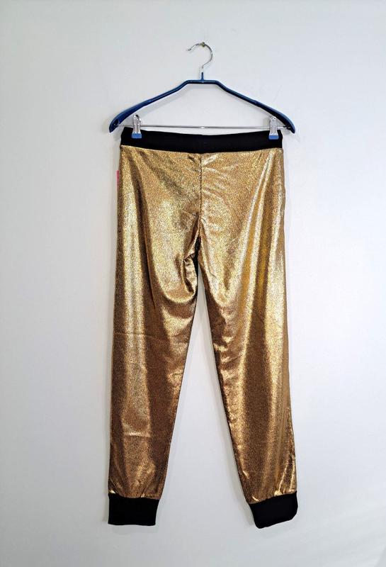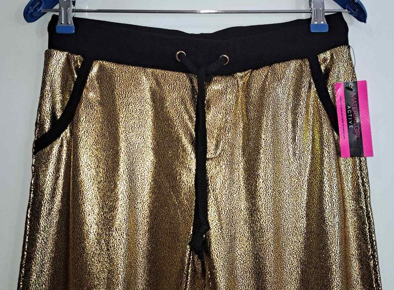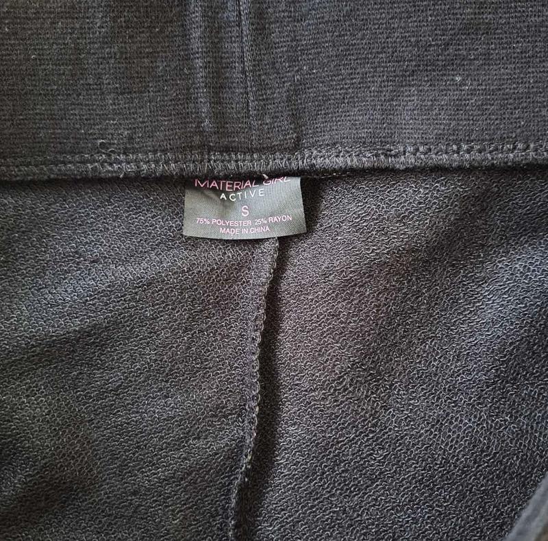 Спортивні штани джогери від американського бренду Material Girl. Пояс на резинці, регулюється шнурком. Є кишені. Манжети на калошах з еластичної тканини. Тканина м'яка, фактурна, зовсім трохи тягнеться.