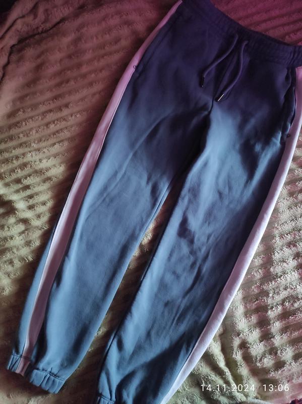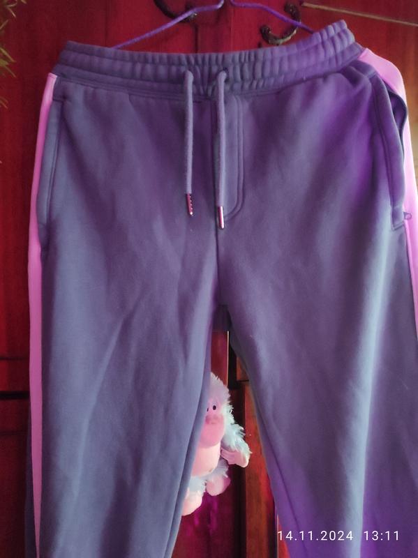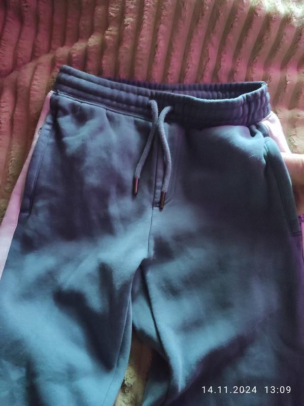 Стильні теплі спортивні штани, джоггери на утепленні з лампами, боковими кишенями на змійці, задньою кишенею, пояс на резинці та шнурівці. Колір денім ( джинсовий), лампаси молочного кольору. Фото невдало передає колір. Стан та колір дуже класний, без дефектів. Розмір S-M.