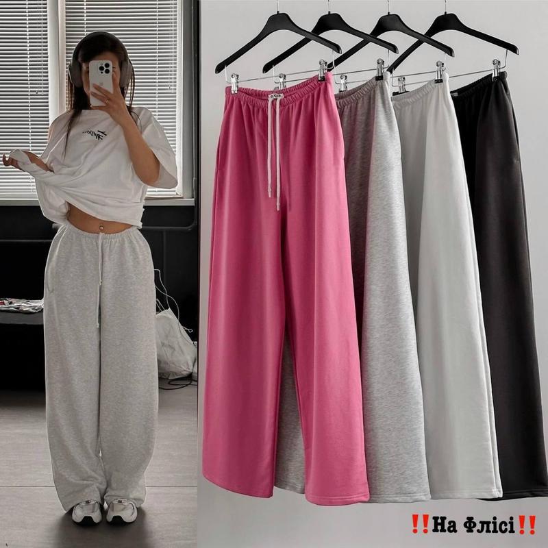 Прямі спортивні БРЮКИ вже на флісі 💞 Висока посадка 💙 Кольори: - сірий - чорний - графіт - барбі - білий ➡️Мод. 1489/bf/ ➡️Розміри: 42-46, 48-50 ➡️Тканина: Трьохнитка на флісі ➡️Довжина виробу 105см Перший розмір ОС до 98см Другий розмір ОС до 114см