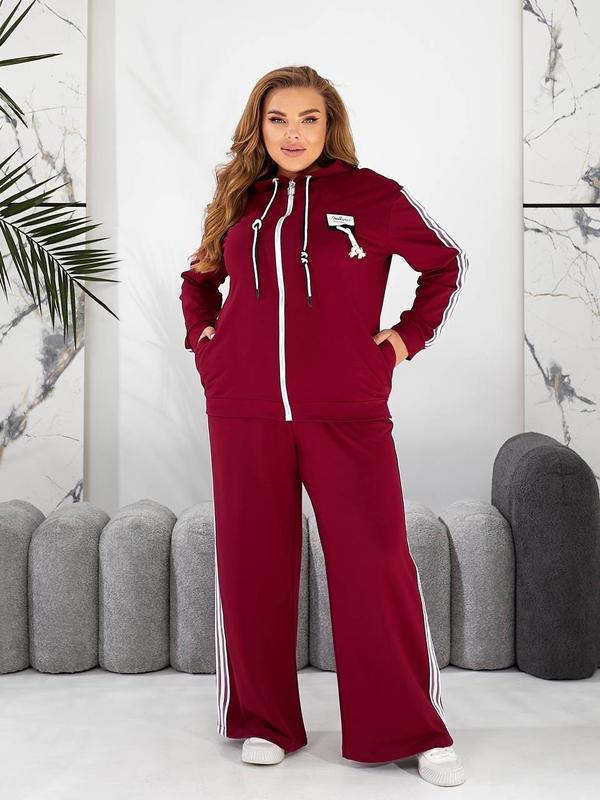 Костюм спорт с штанами паллацо Мод 07Ткань:двунитка + лампасы+пришивная + змейка Размер:,50-52,54-56,58-60, 62-64Цвет: черный,бутылка, серый, Бордо,джинс,хаки50-52 Длина кофты – 70 см, длина рукава – 57 см, Ог – 120см, длина брюк – 109см, Об – 130см, ОТ резинка – 72/112см.54-56 Длина кофты-70 см, длина рукава-57см, Ог-128см, длина брюк-109см, Об-138 см, ОТ резинка-80/120см 58-60 Длина кофты-70 см, длина рукава-57см, Ог-136 см, длина брюк-109см, Об-146, ОТ резинка-88/12864-64 Длина кофты 71 см , длина рук 58 см , длина брюк 110см , ог- 144 см , об - 154 см , от- 96/136смЗамеры сняты по изделию