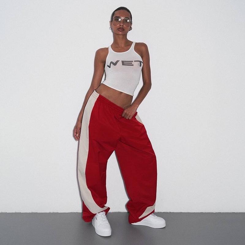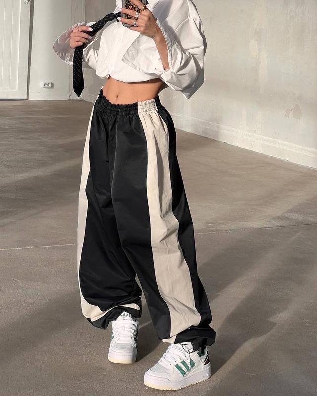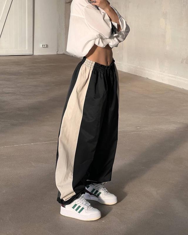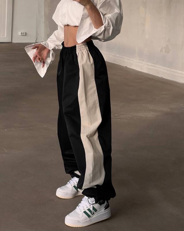 Тканина: плащівка жатка ( матова )Розмір: 42-46 ( універсал )Кольори: сірий, беж+червоні вставки, чорний+беж вставки, червоний+беж вставкиТалія на гумціШтани знизу на затяжках