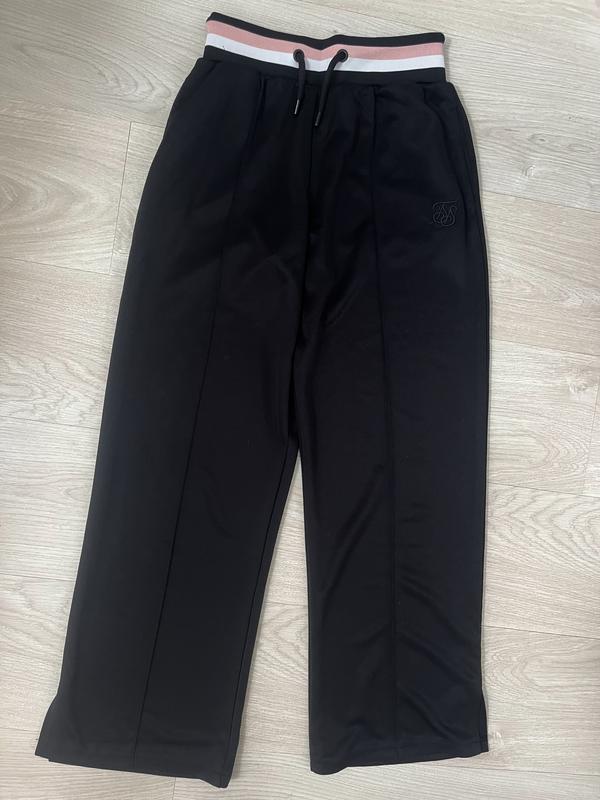 Спортивні штани жіночі для прогулянок, стильні, сучасні і легкі, розкльошені з прошитими стрілками. Є кишені, по низу з розрізами. На талії резинка, та завʼязки що регулюються.