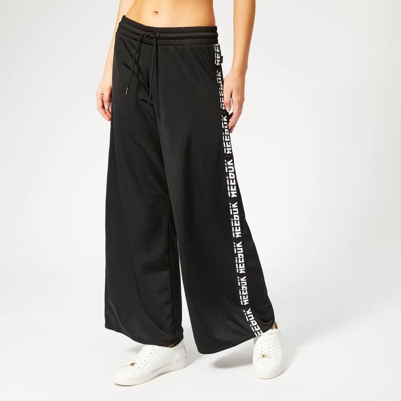 Широкі штани в спортивному стилі плюс сайз оздоблені лампасами з логотипом Reebok. Нові з етикеткою. Розмір 2XL. Тканина поліестр, щіль, гладка, не просвітлює. Заміри пояс резинка 53-64см, бедра 67см, посадка 28см, штанина верх 40см, низ 42см, довжина по боковому шву 107см