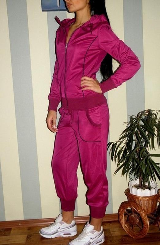 Стильний і оригінальний костюм. Незвичайного кольору. Кофта з капюшоном на блискавці. Коротенькі штанці під резиночку. Плотненький трикотажик. Штани: ПО в поясі 38см ПО стегнах 48см Висота посадки 20см ПО Ширина штанини зверху 26см ЗА Ширина штанини знизу 20см Довжина штанини 81см Кофта: Плечі 38см ПОГ 45см ПІТ 40см Довжина рукава 66см Довжина виробу 60см