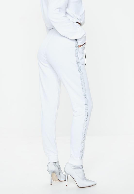 Сніжно-білі нові спортивні штани, зі світловідбиваючими смужками з боків, Missguided, на розмір S-M, UK 8, US 4.